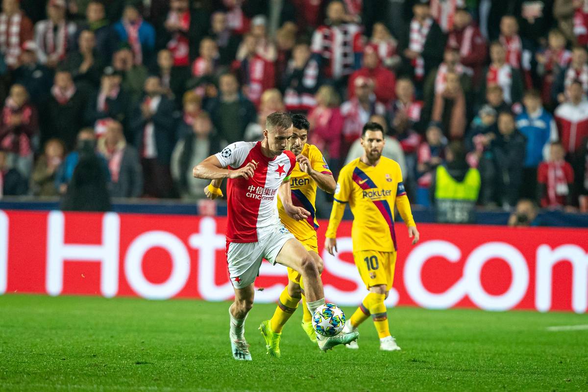Ještě jako slávista v zápase s FC Barcelona, na snímku s Lionelem Messim (vpravo)