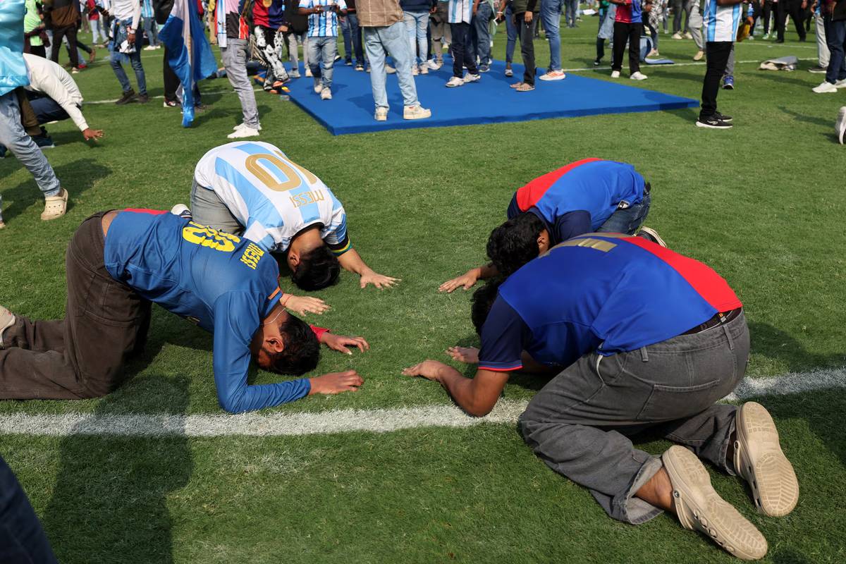 Fanoušci skandovali, kupovali dresy a nosili čelenky s nápisem „I love Messi“. Messi zpočátku po stadionu mával fanouškům, ale jeho vystoupení pak náhle skončilo, což vedlo k frustraci fanoušků, kteří pak vtrhli na hřiště.