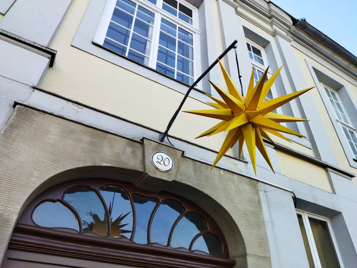 Hvězda nad vchodem do budovy jednoty bratrské v Herrnhutu.