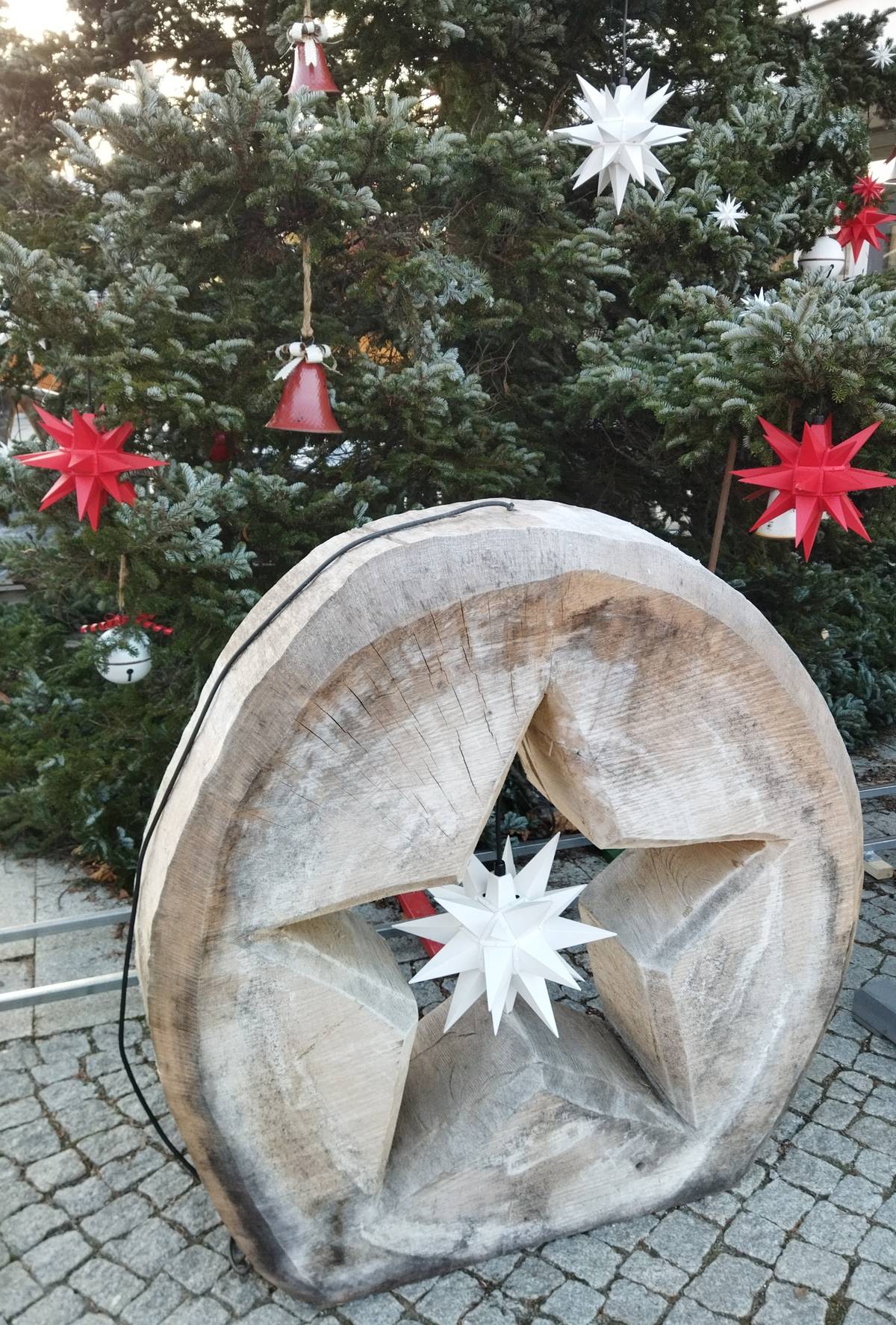 Vánoční výzdoba před manufakturou.