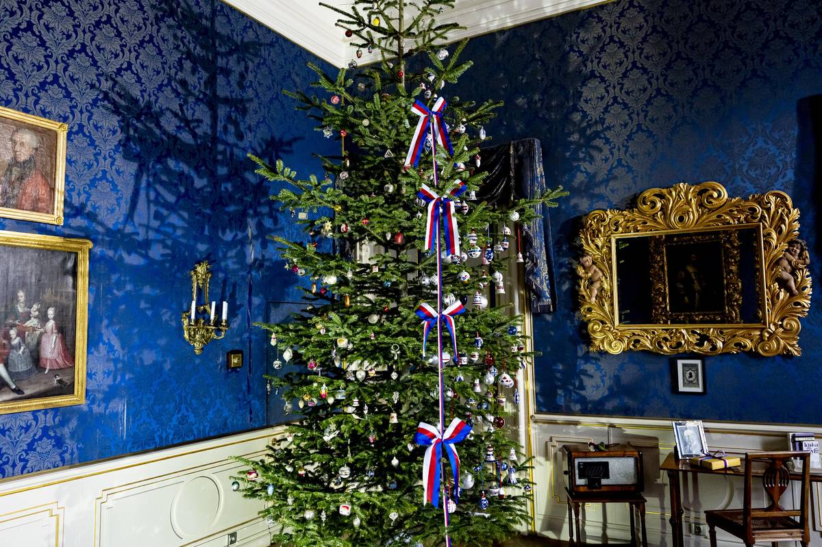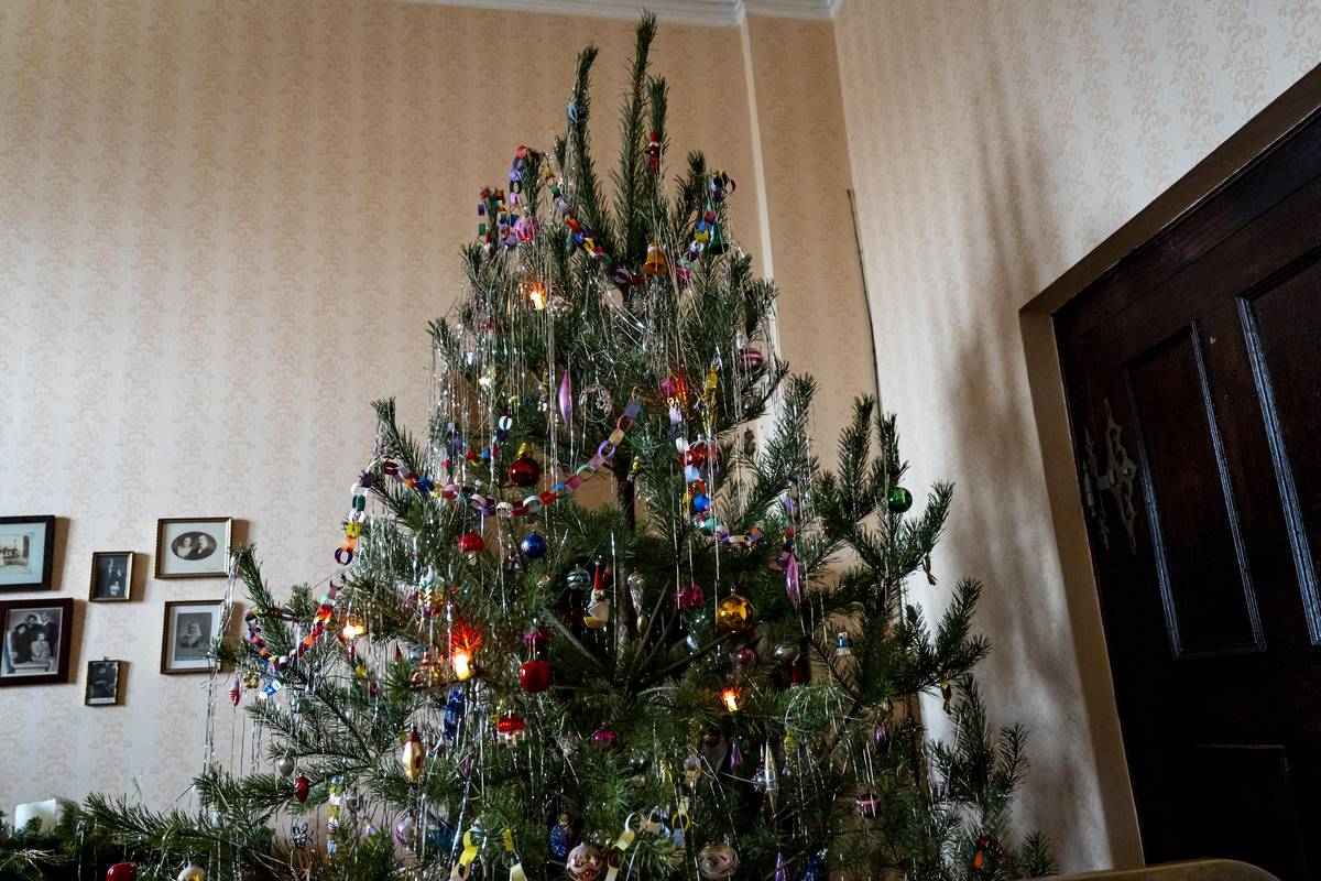 Výstava vánočních stromečků na zámku Loučeň. Na snímku zdobení vánočního stromečku v období komunismu.