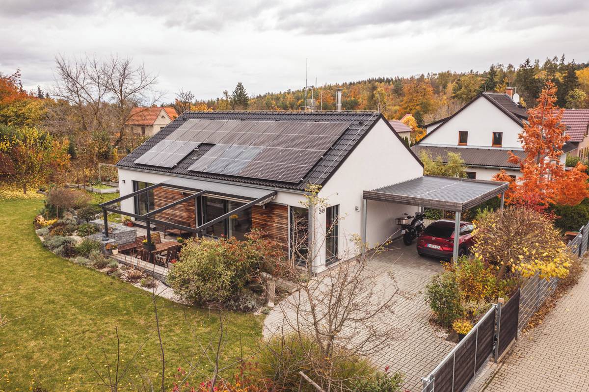 Partneři mají fotovoltaiku (19 panelů) s bateriovým úložištěm (10 kW)