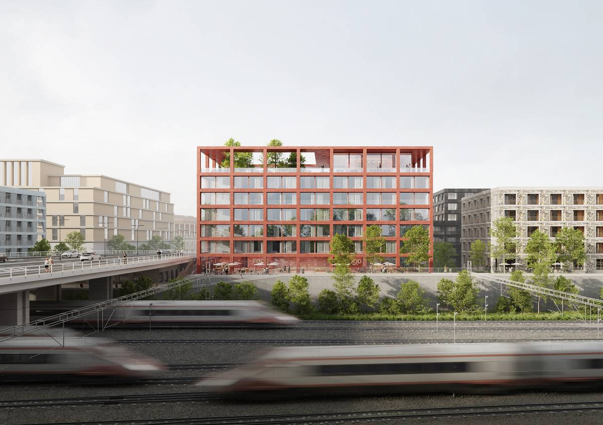Budova při železniční promenádě má obsáhnout menší bytové jednotky doplněny o společné komunitní prostory v interiéru a exteriéru budovy například na střeše.