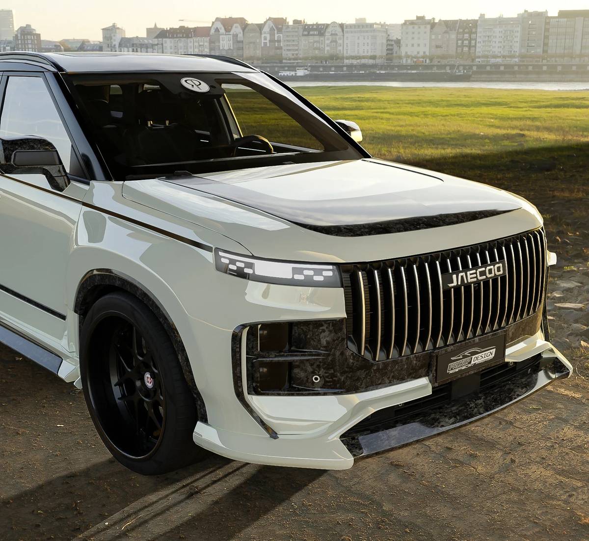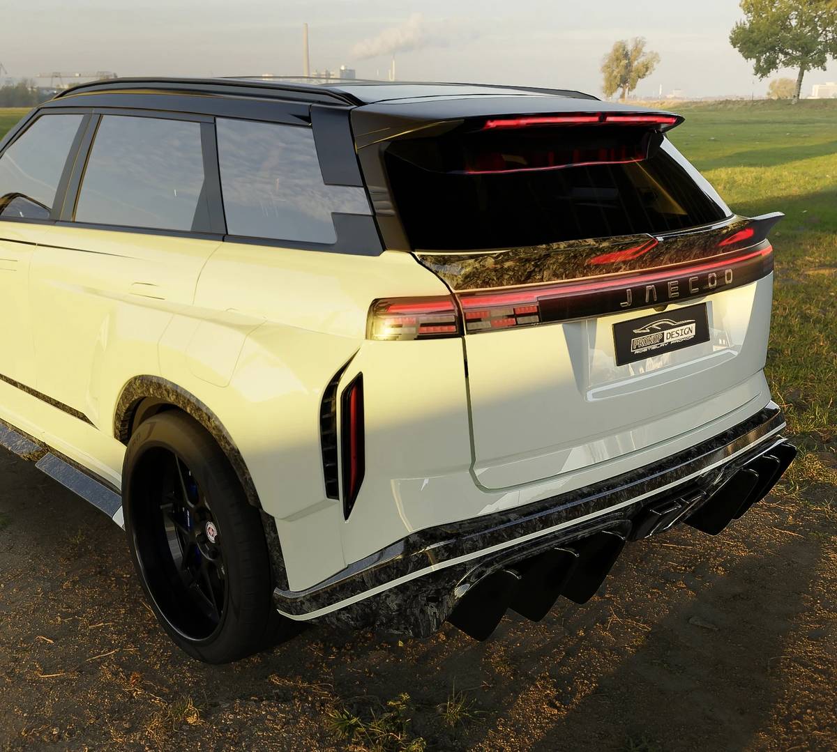 První tuningová vizualizace SUV od mladé čínské značky je tady. Navrhl ji český designér, karbonem nešetřil
