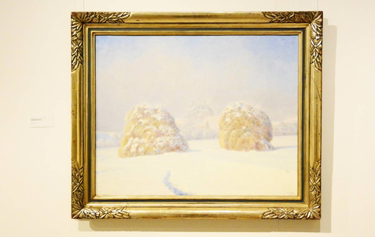 Zima dýchá syrovým chladem z obrazu Zasněžené stohy (kolem roku 1903).