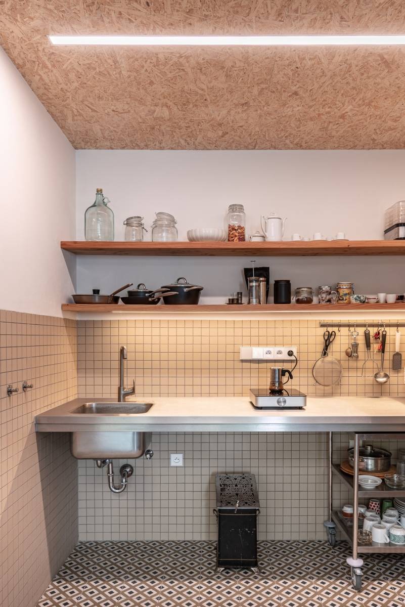 Obklady použité na fasádě architekti využili také v interiéru.