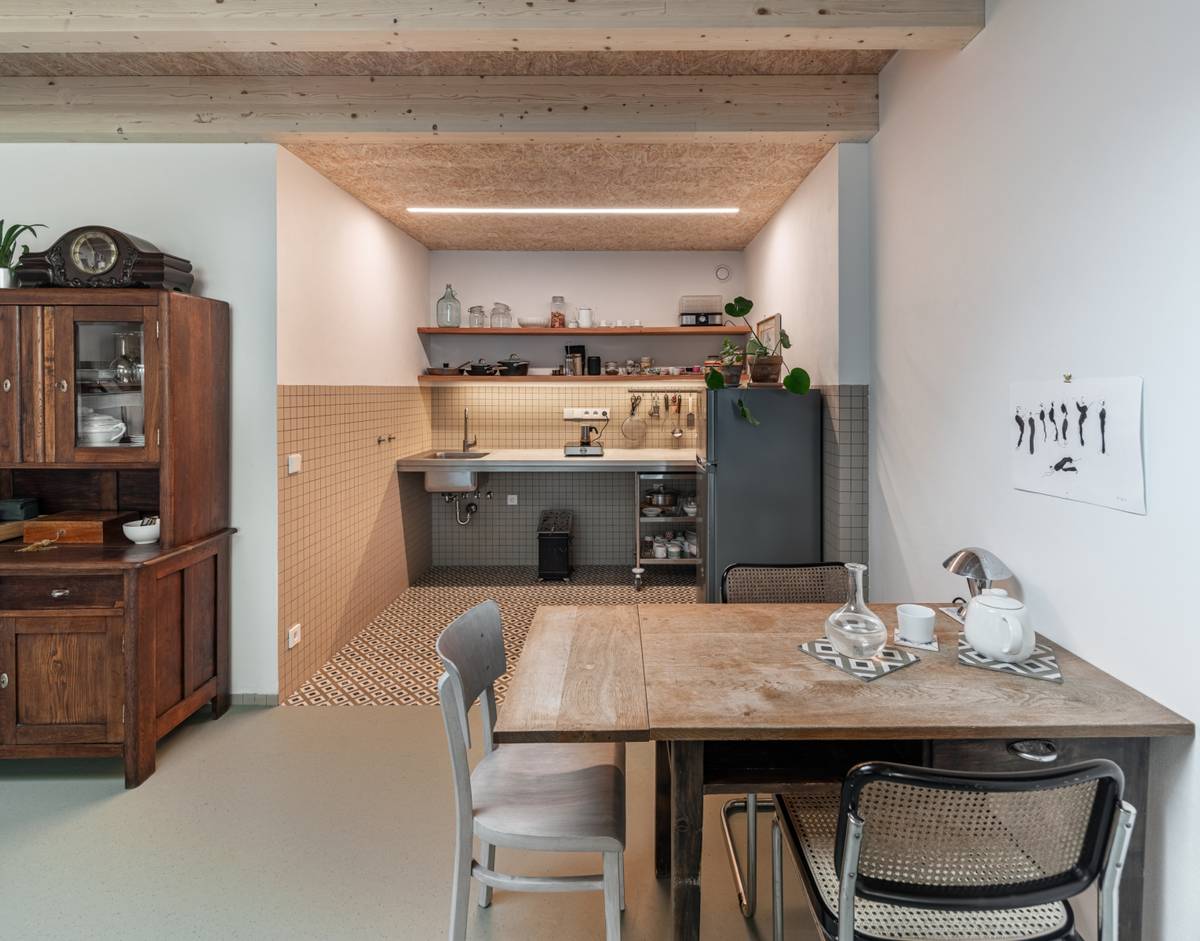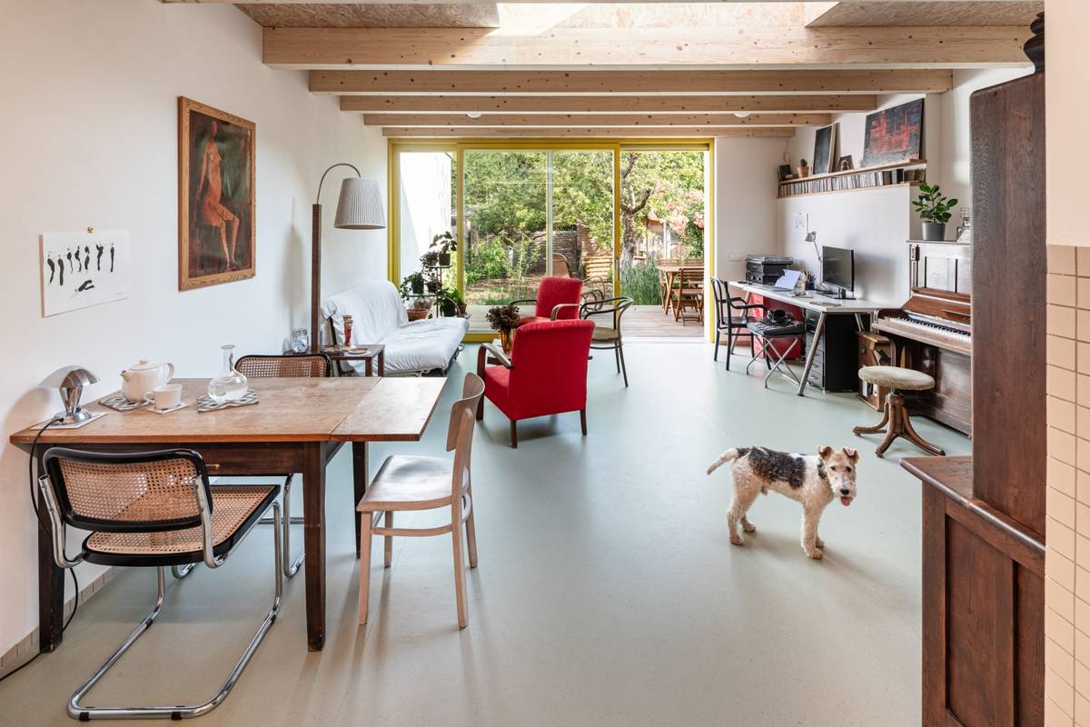 Hlavní obytný prostor se přesunul do přístavby, kde je nově obývací pokoj, kuchyň, jídelna i pracovna.