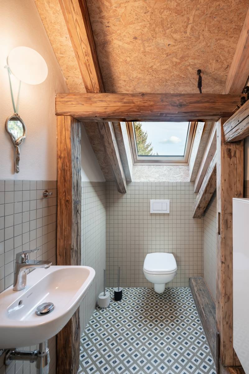 Obytné podkroví zabírá ložnice s malým samostatným wc.