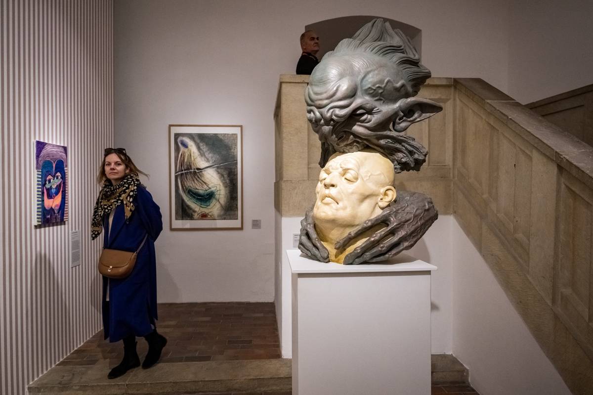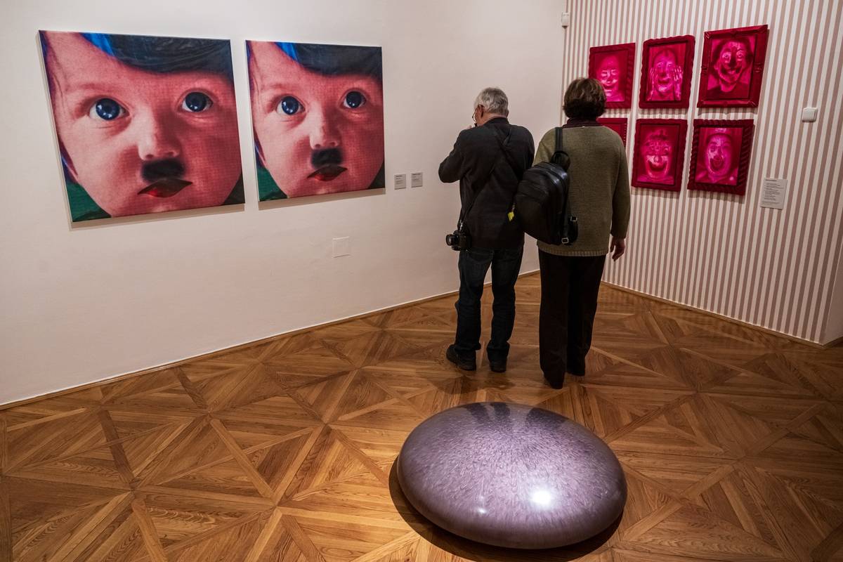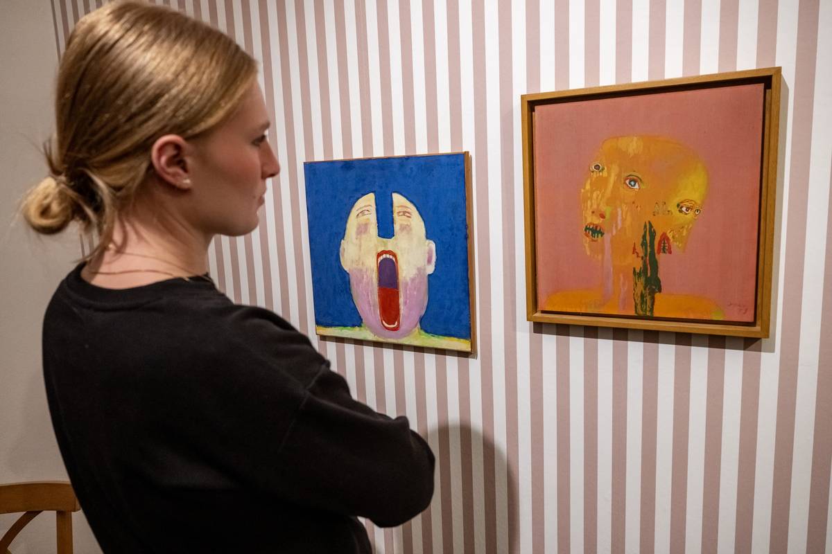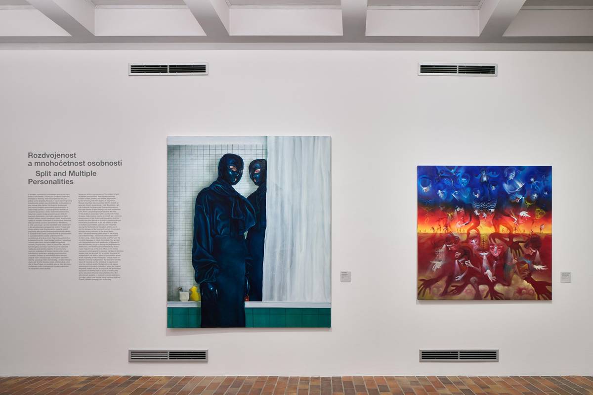 Na snímku jsou obrazy Jiřího Sopka nazvané Rozpolcenost a Hlavy ze 70. let.