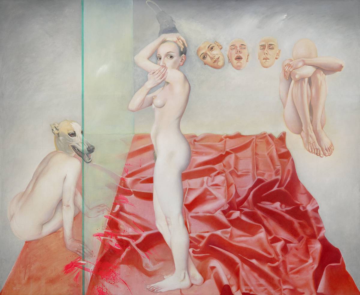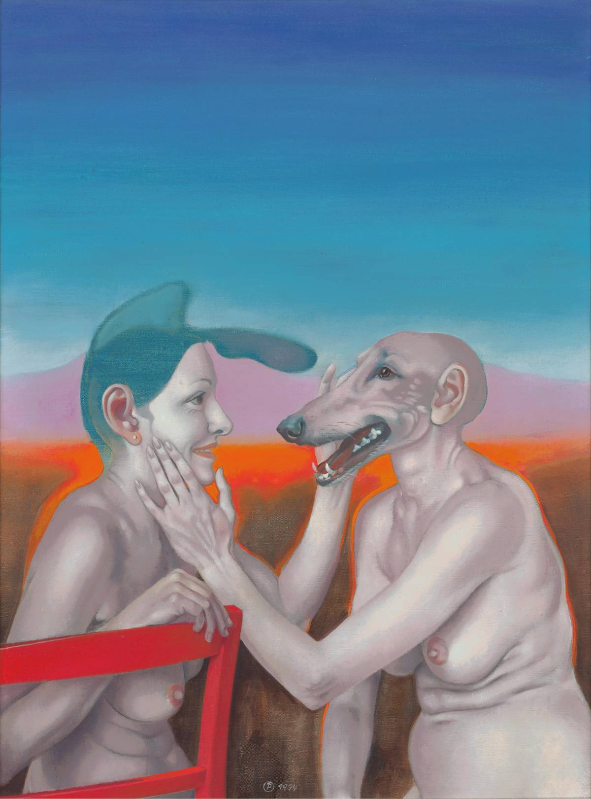 Petra Oriešková: Dvě bytosti, 1994, olej na plátně.