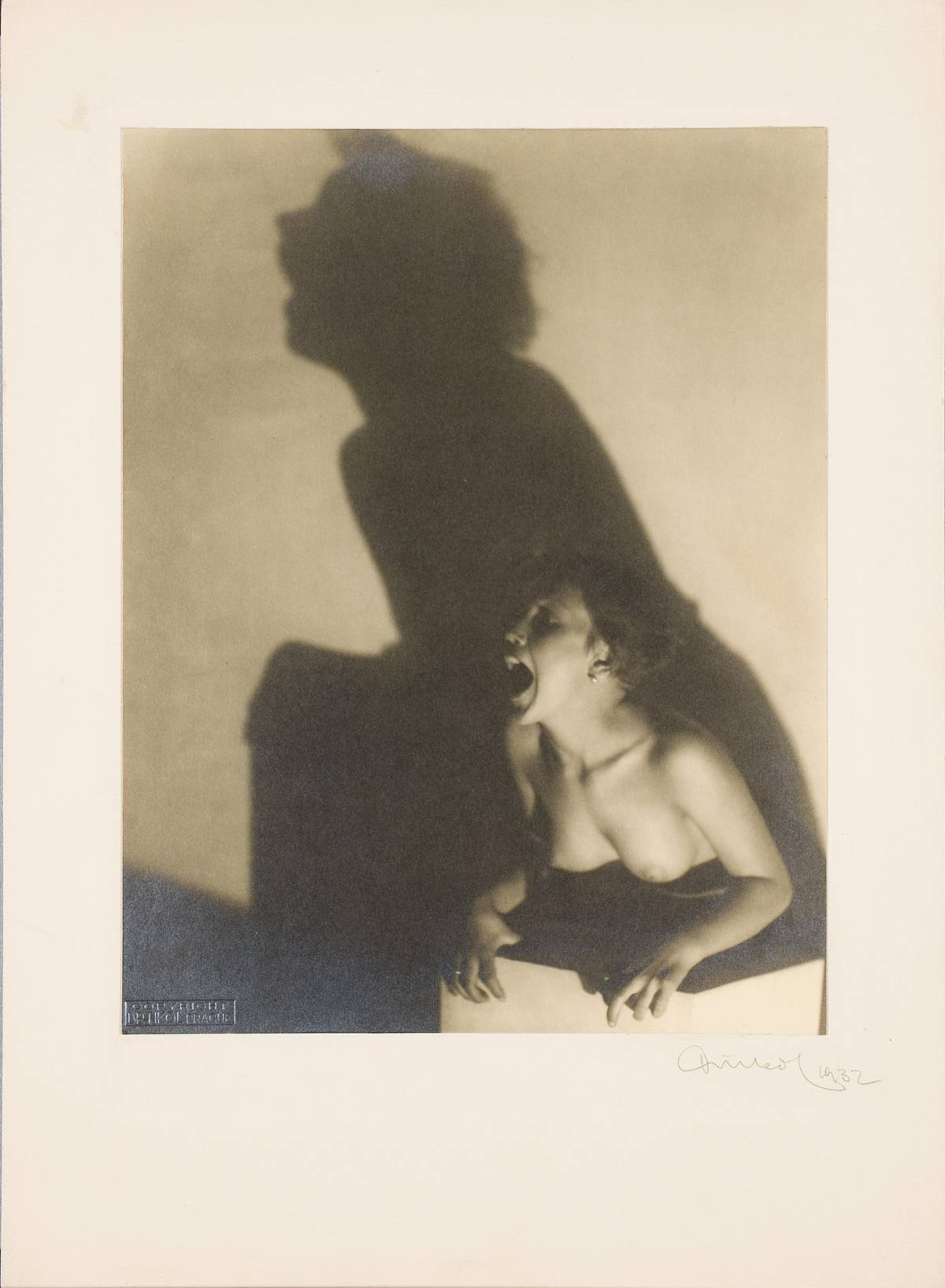 František Drtikol: Akt (Křik, Výkřik noci), 1932, papír s bromostříbrnou emulzí, fotografie bromostříbrná.