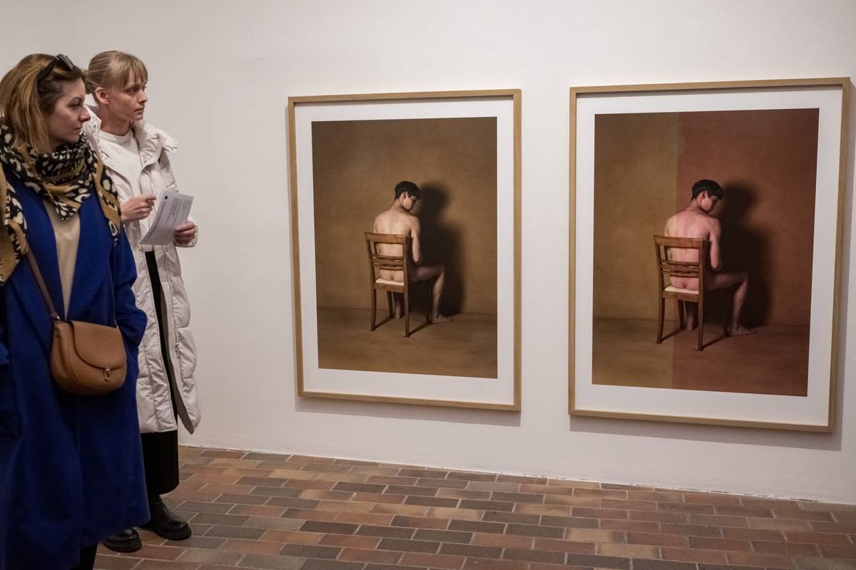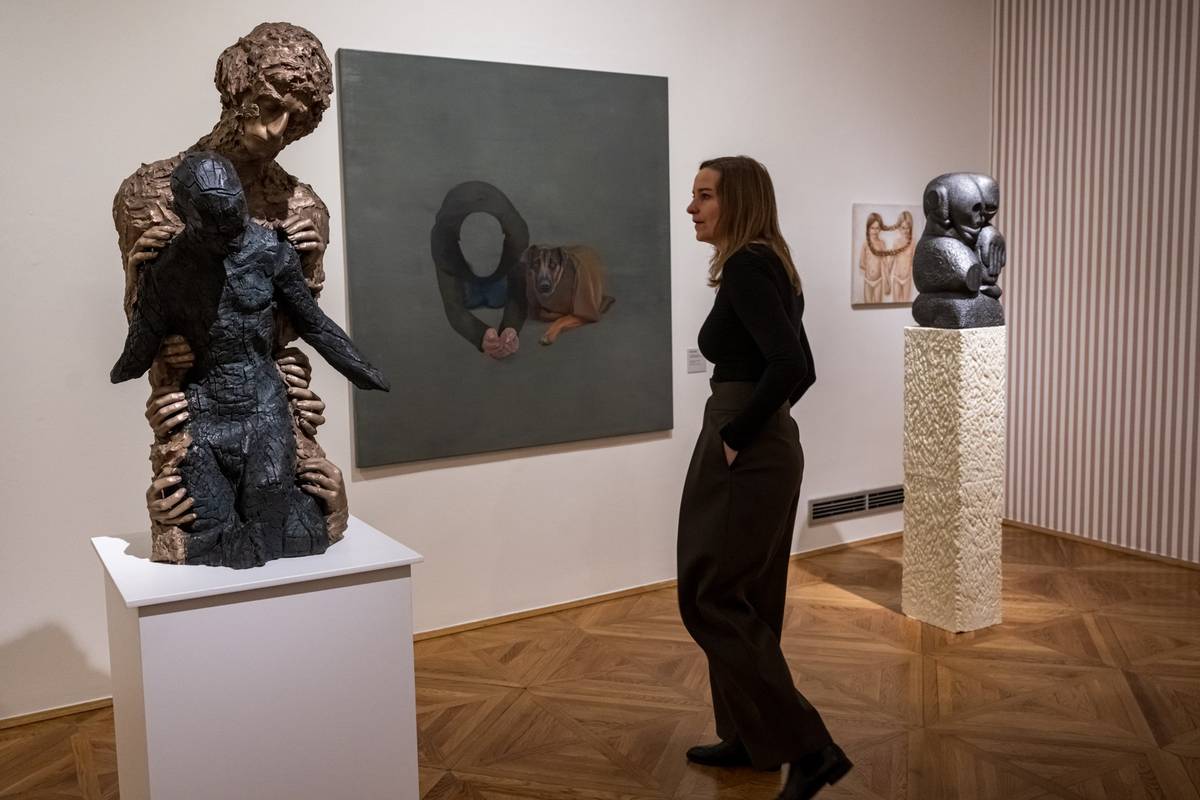 Vlevo je dílo Jiřího Surůvky Dvojčata z roku 1997.