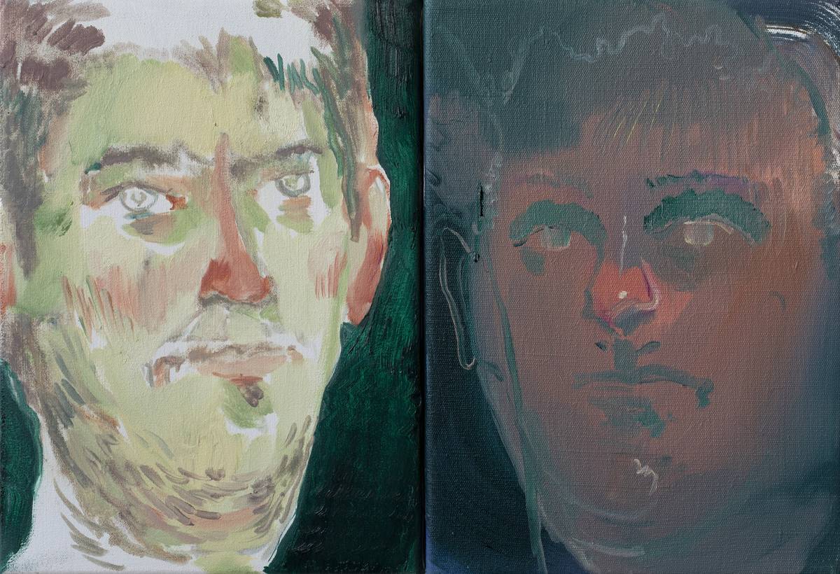 Jakub Čuška: Twins, 2023, olej na plátně.