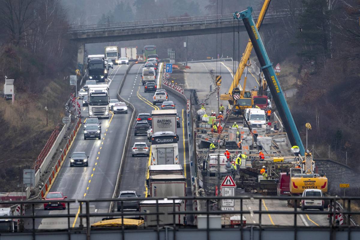 Na dálnici D1 u Senohrab se rekonstruuje most Šmejkalka. Stavbaři rozebírají jeho první polovinu.