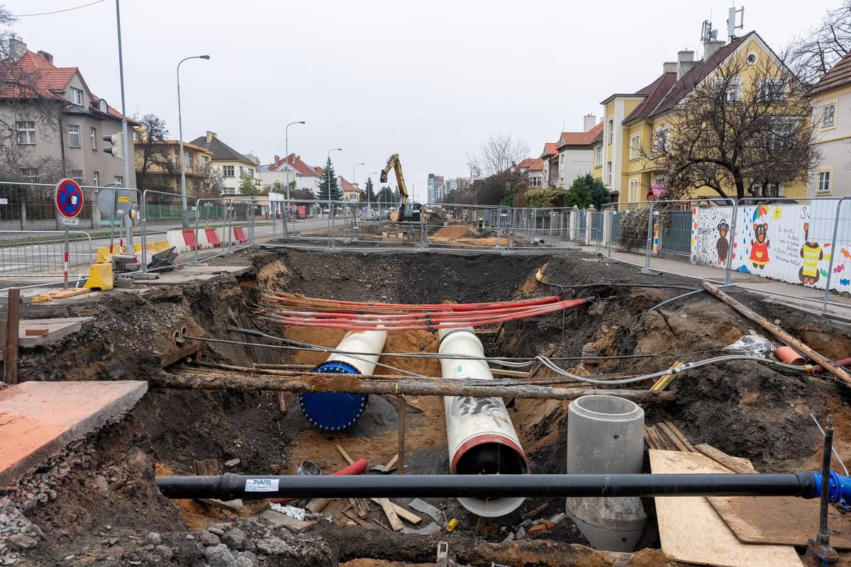Hlavní třída v Malešicích je jedno velké staveniště.