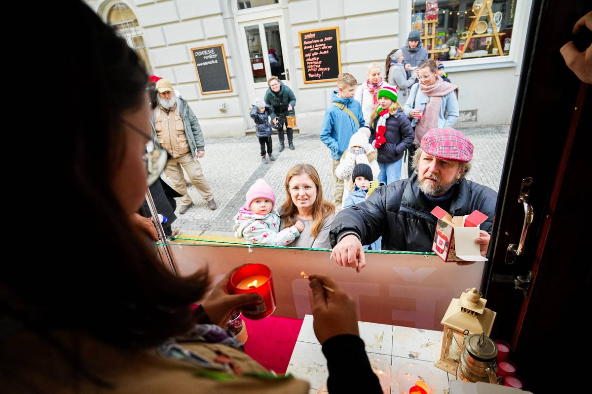 Kromě Betlémského světla rozdávali skauti i kalendář a sladkosti.