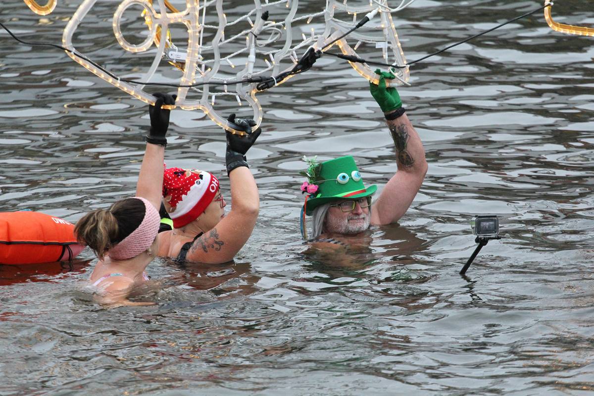 Tradiční předvánoční propagační otužování v řece Jihlavě v centru Třebíče.
