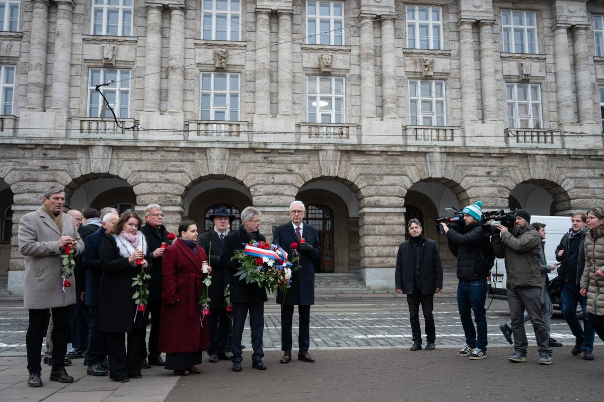 Mezi prvními politiky, kteří si přišli událost připomenout, byla delegace Senátu ČR.