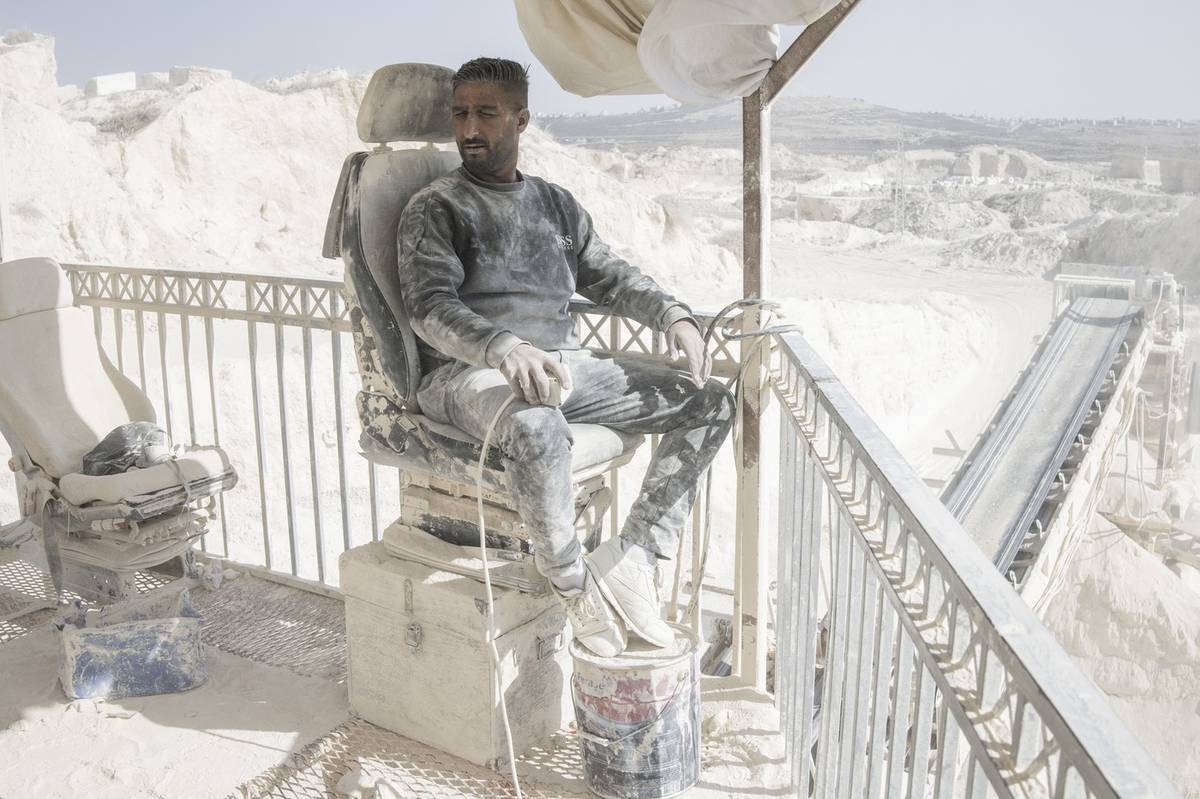 V sousedním lomu u práce u těžké práce pokašlával bývalý učitel zeměpisu. Vzhledem k rozpočtové krizi Palestinské samosprávy již nedostával plat, a tak si našel práci v jediném místním podniku, který ještě přijímal nové zaměstnance.