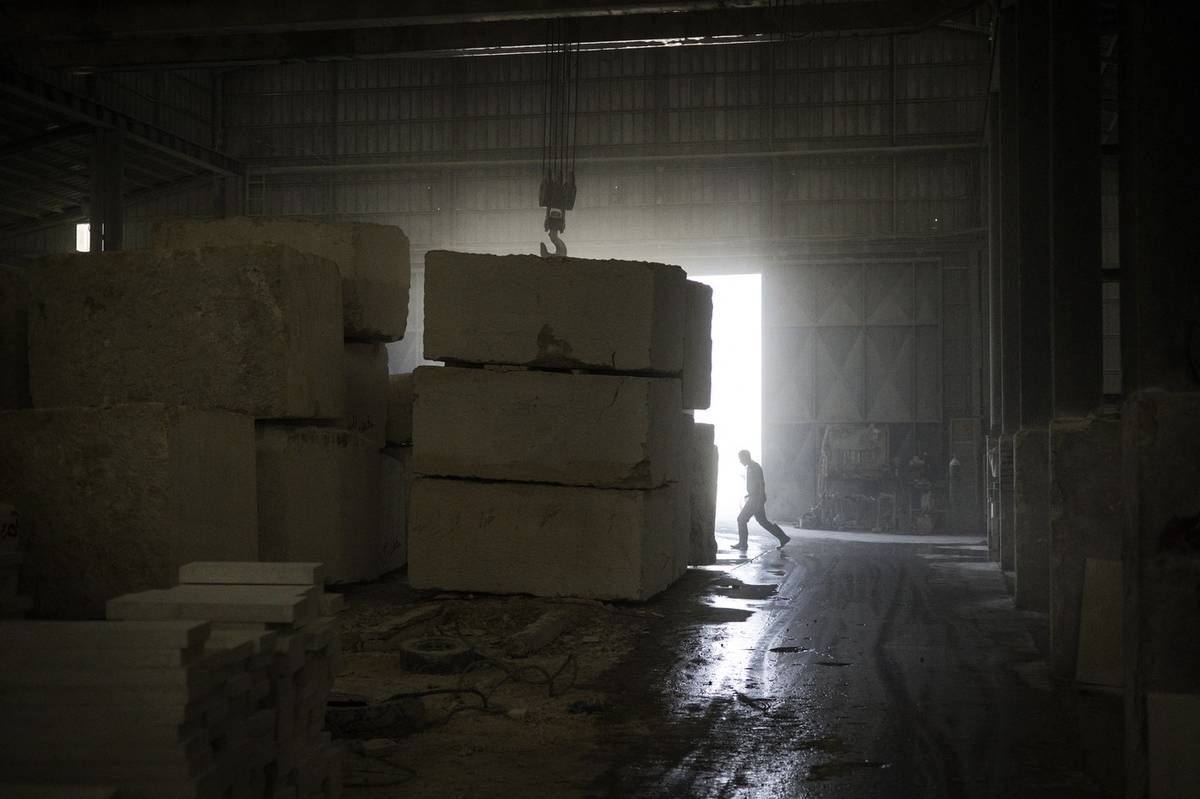 (Dělník prochází kolem velkých bloků jeruzalémského kamene uvnitř továrny v Beit Fajar, 10. listopadu.)