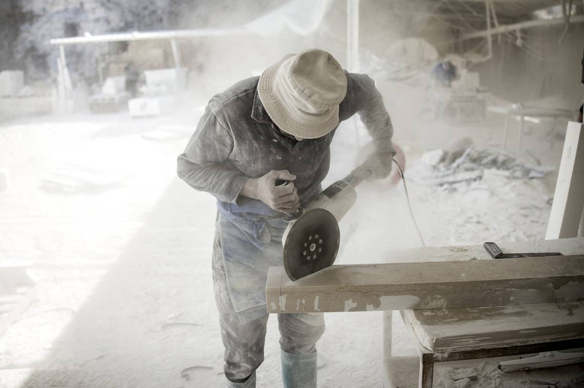 (Mahmúd aš-Šejch (62) se řezáním kamene zabývá již 40 let, vyfoceno v továrně na řezání kamene v Beit Fajar, 10. listopadu.)