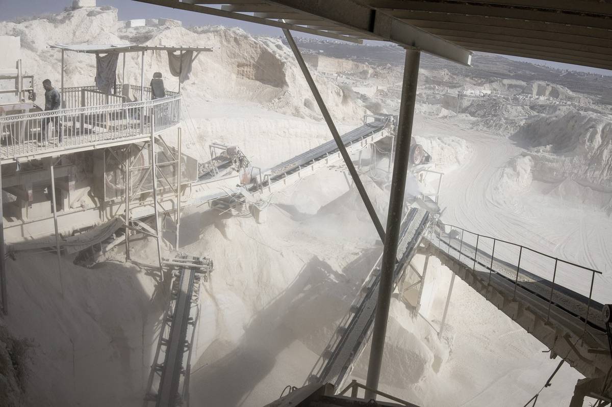 Provozovatel lomu na okupovaném Západním břehu Faradž al-Atraš je hrdý, že navzdory katastrofálnímu stavu palestinské ekonomiky jeho stroje dál obrušují strmé stěny prašné bílé skály.