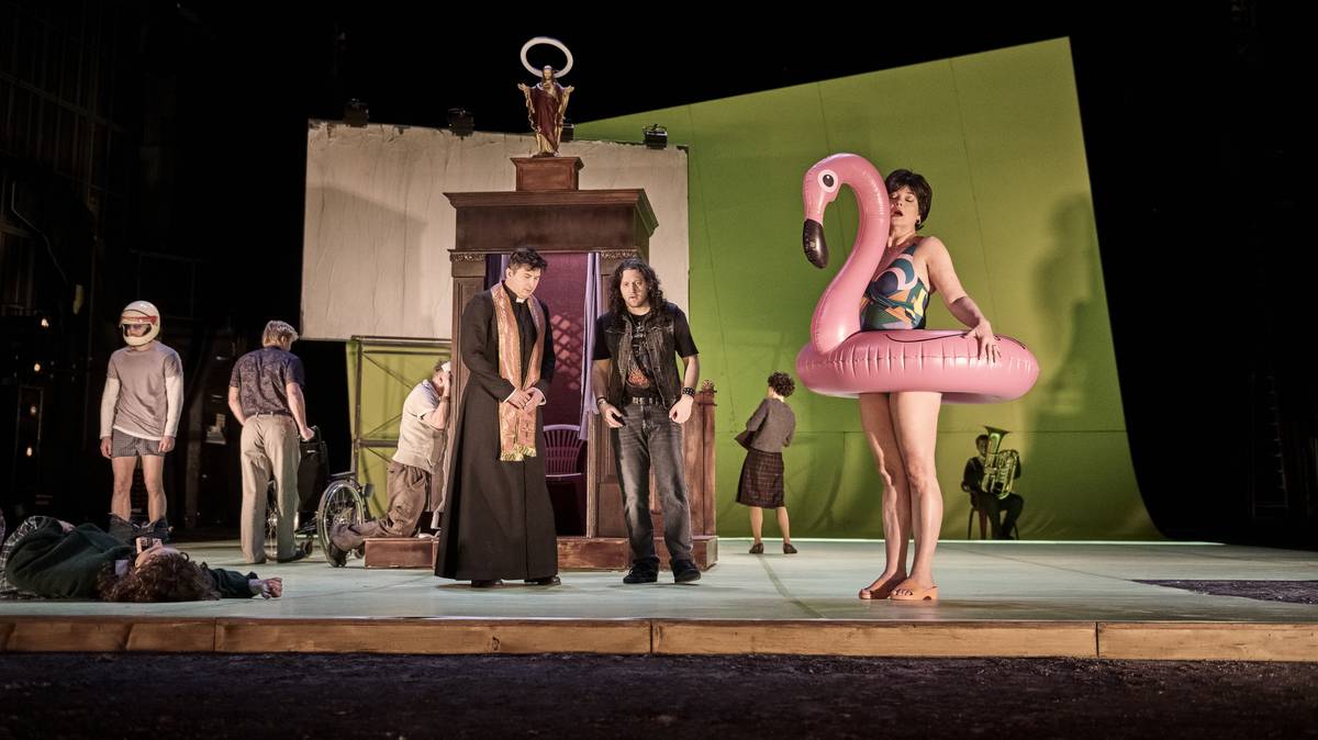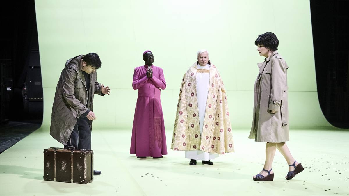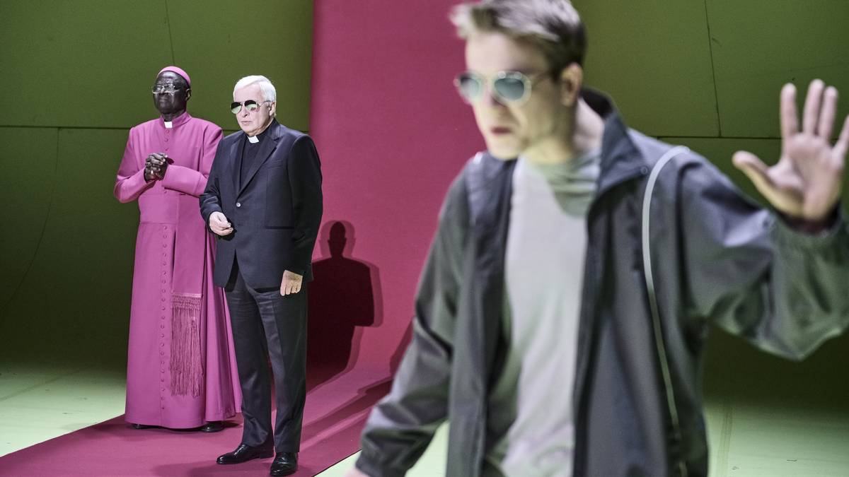 Valéry Samane Djakoualno jako černý biskup, Vladislav Beneš coby bílý biskup a Zdeněk Piškula v roli Toníka.