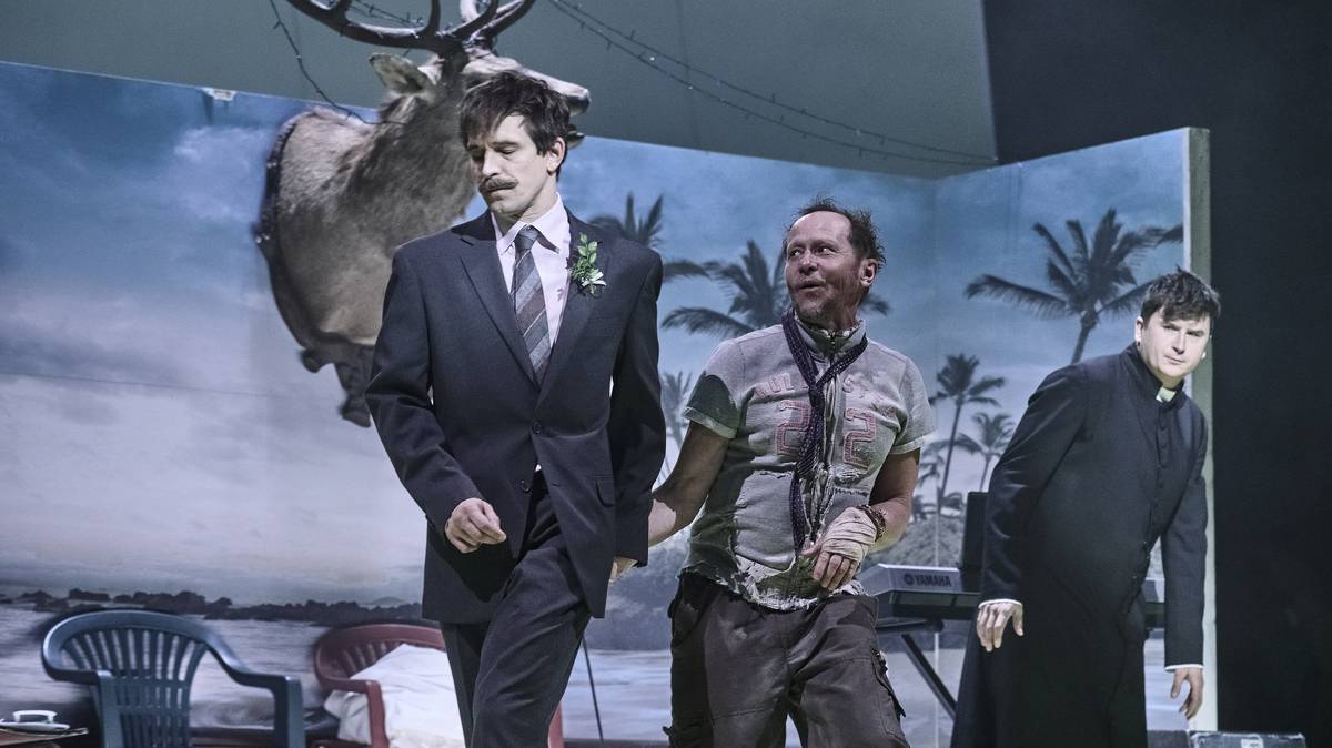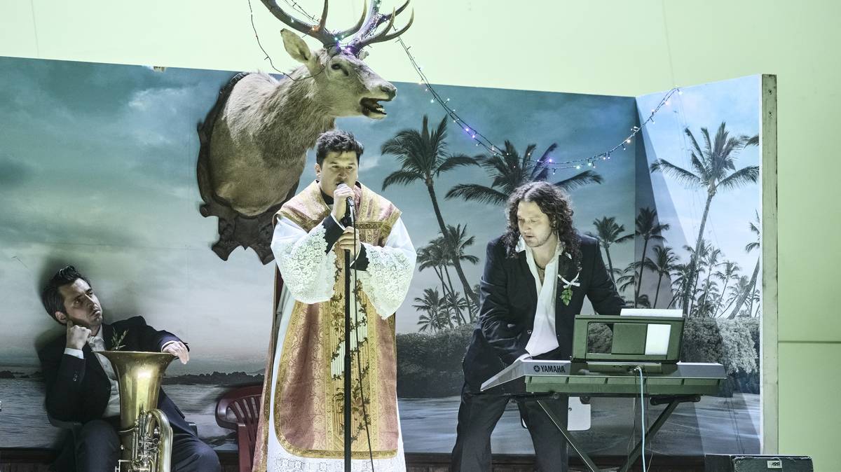 Igor Orozovič jako kantor, Ondřej Malý coby Lojza a Šimon Krupa v roli kostelníka.