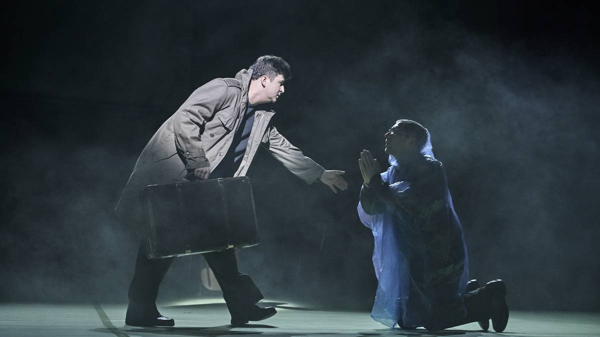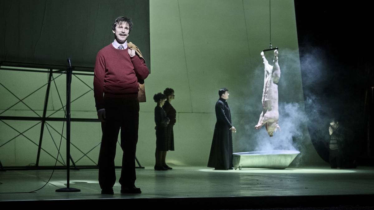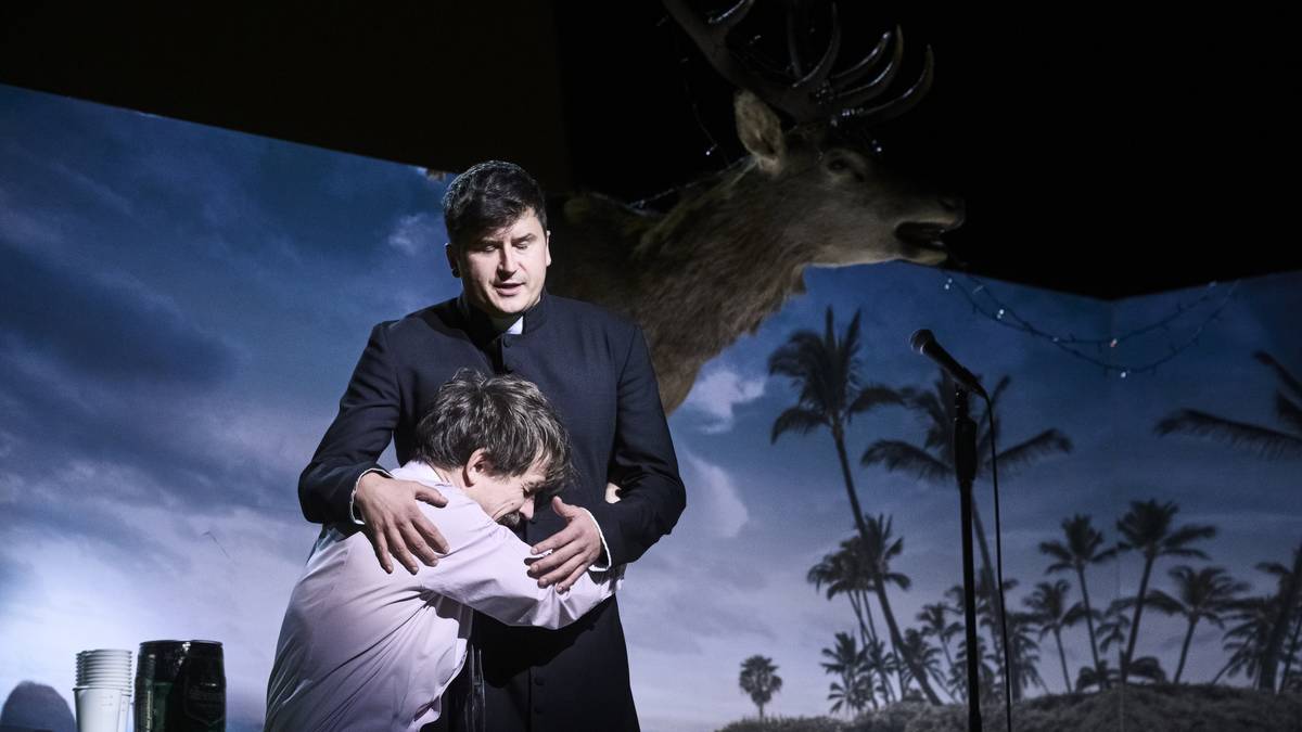 Na fotografii z inscenace Farářův konec, kterou nově hraje Národní divadlo, je Šimon Krupa v titulní roli.