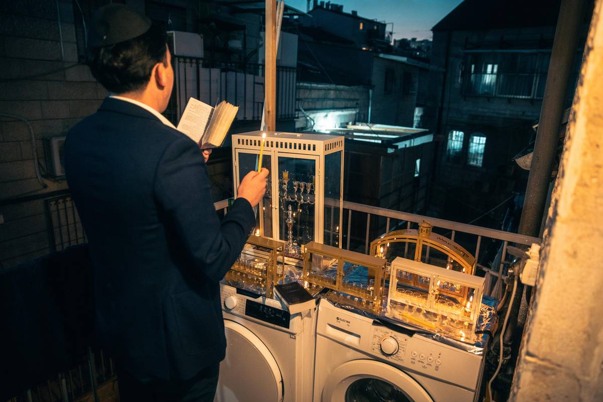 Chanukové svícny jsou všude. Za okny, v ulicích, na terasách. A klidně i na pračce.