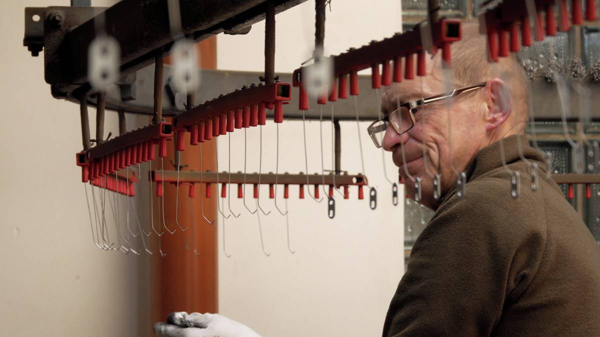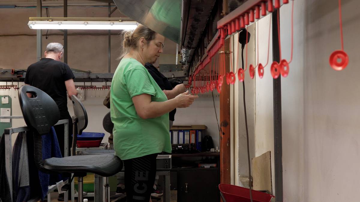 Na součástky se pomocí práškovací technologie nanáší barva.