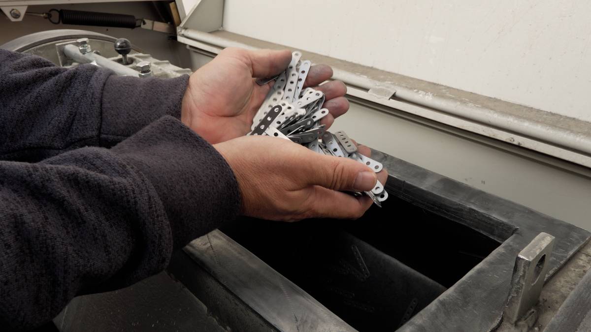 V tomto bubnu se omílají součástky tak, aby nebyly mastné a neměly ostré hrany.