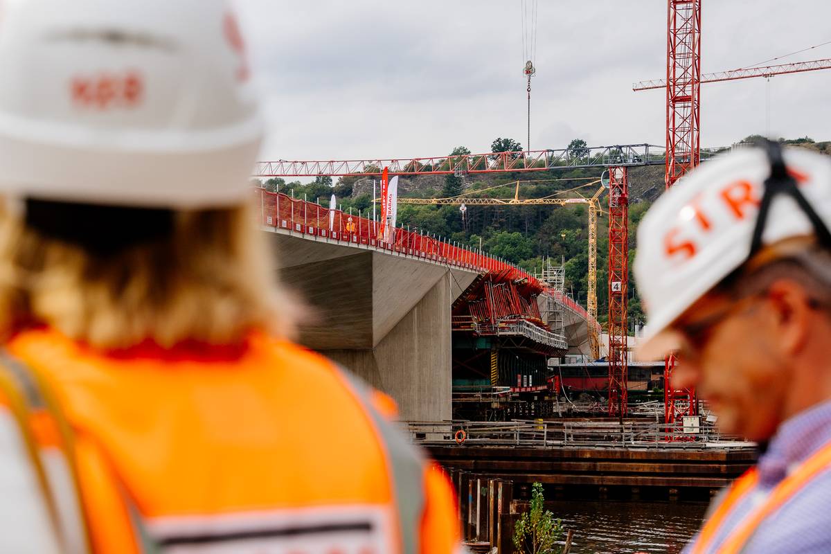 Fotografie z prohlídky mostu z letošního podzimu, kdy si bylo možné stavbu poprvé přejít.