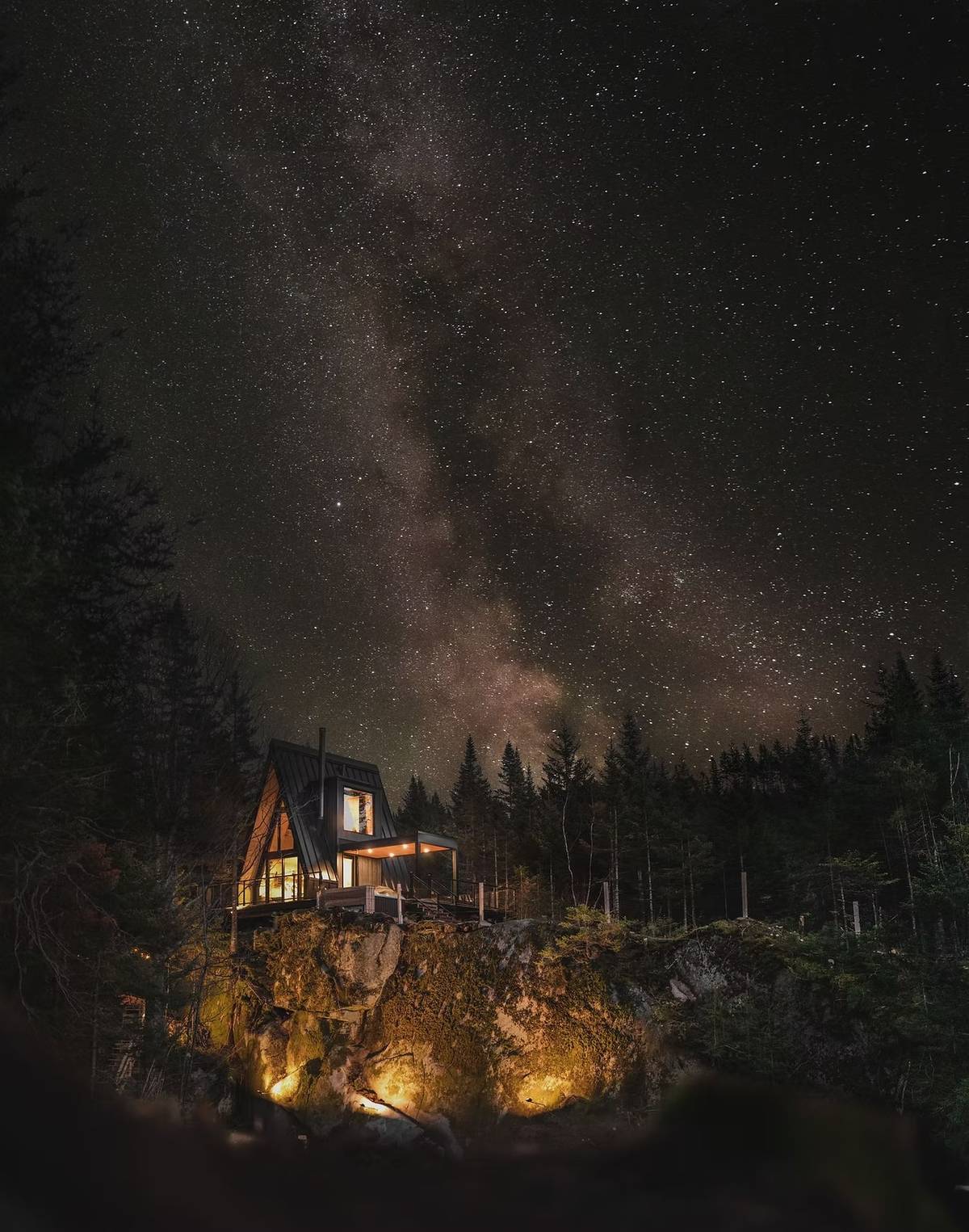Chata stojí mimo civilizaci, a tak si obyvatelé mohou užívat výhledu na hvězdné nebe a někdy i polární záři.