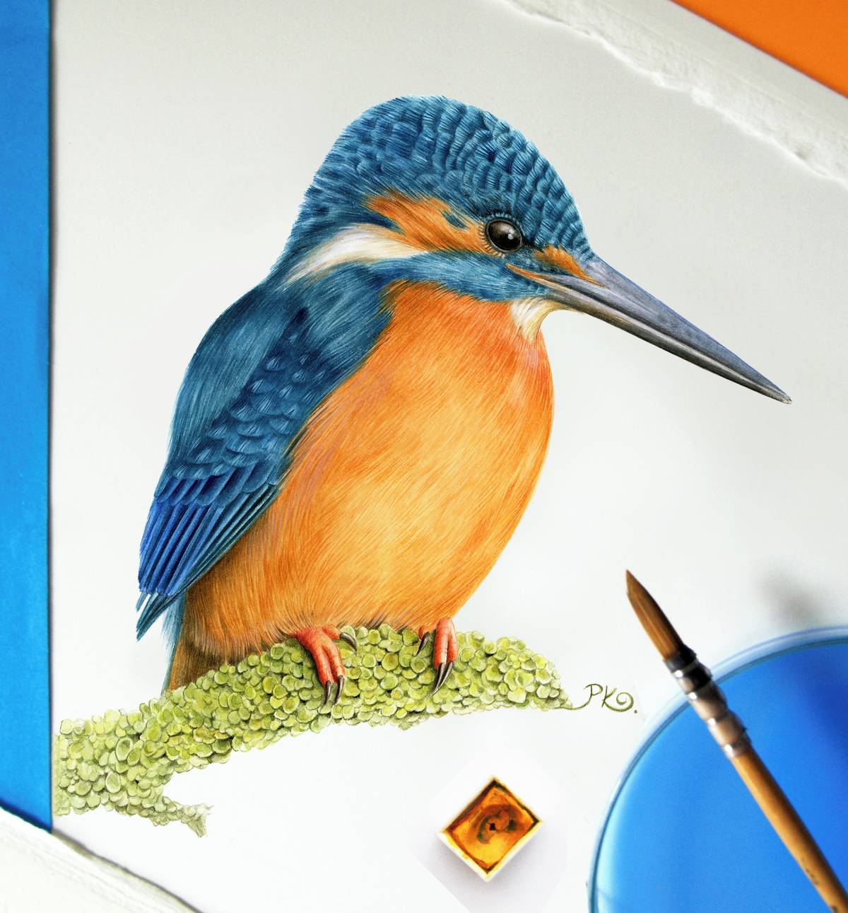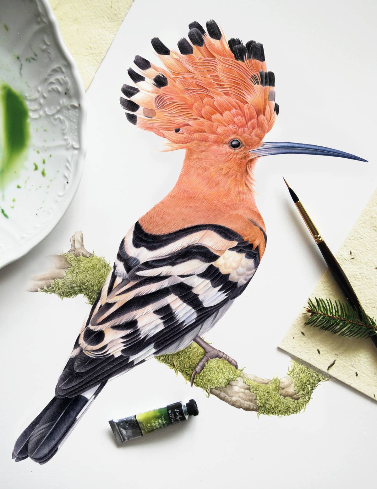 Drobnější malby ptáků jsou pro Pavlínu Kourkovou vítaným zpestřením práce na velkých akvarelových malbách květin a rostlin.