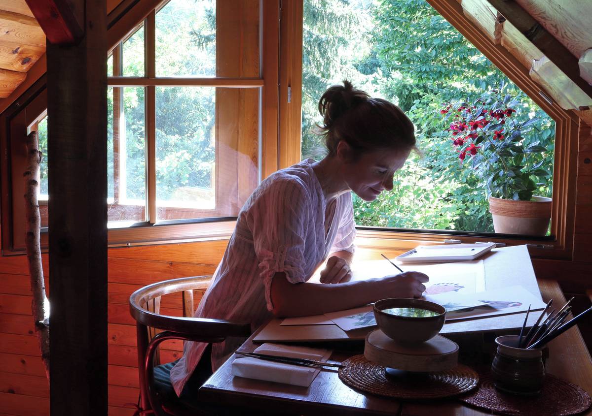 Umělkyně stále pracuje se stejnou značkou akvarelových barev, které kdysi dostala darem a oblíbila si je.