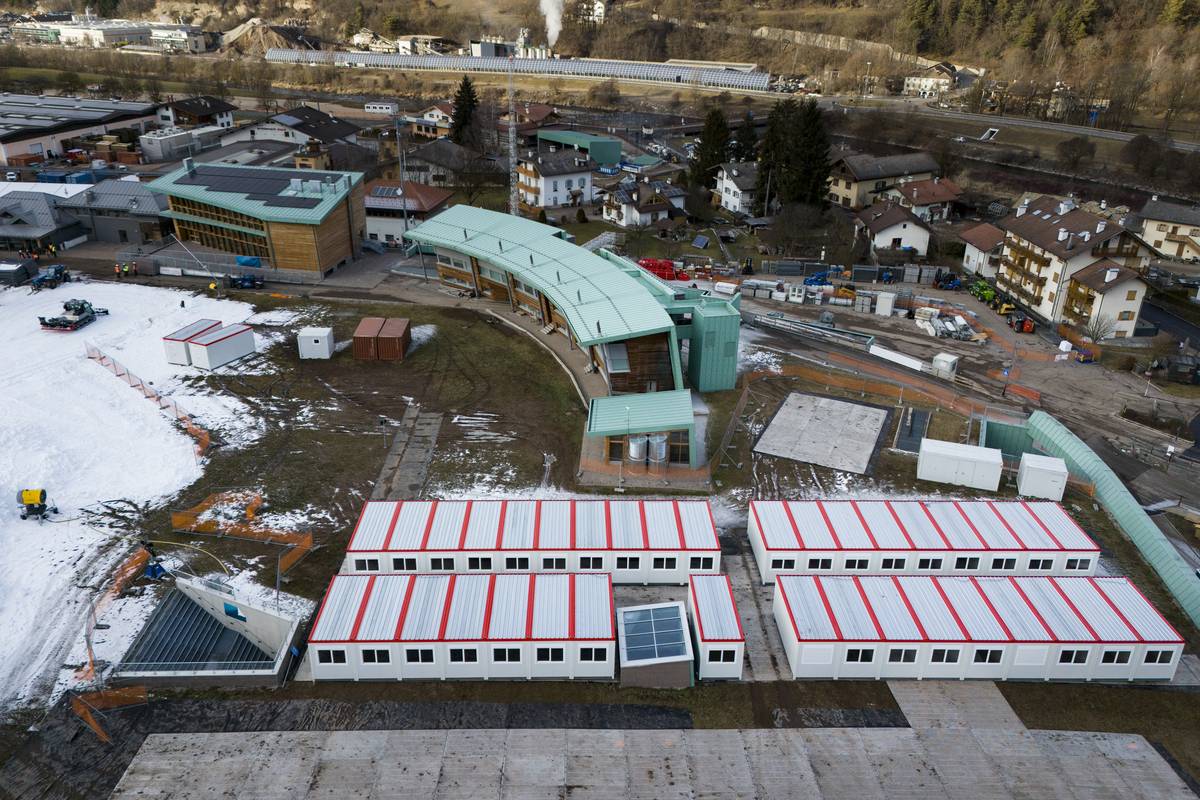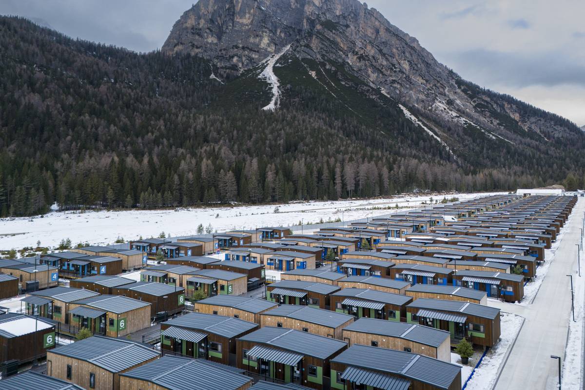 Olympijská vesnice za Cortinou je hotová. Sestavena je z modulárních domů.