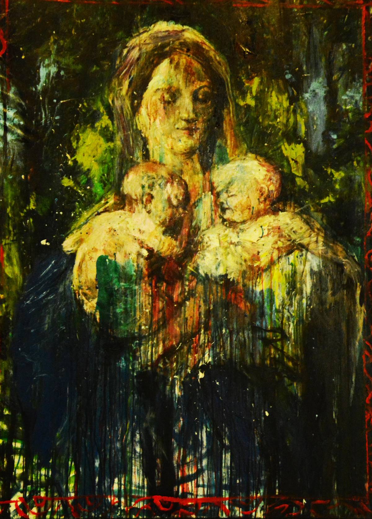 Obraz s motivem madony odkazuje ke klasickým barokním dílům.