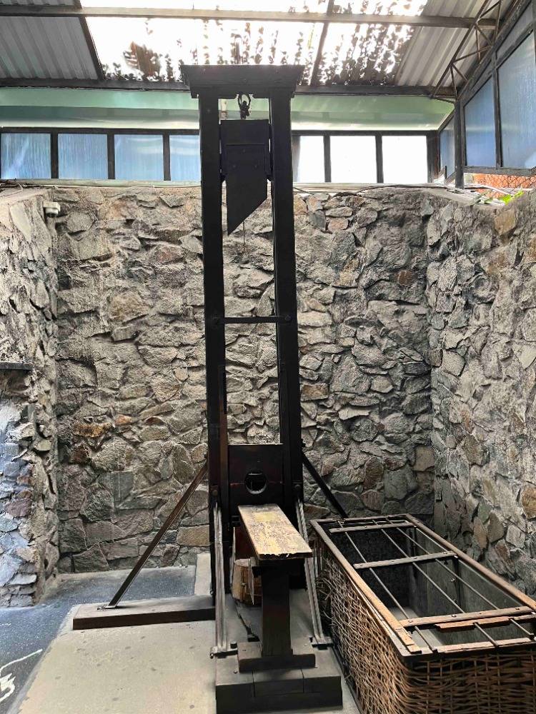 Muzeum vystavuje také jednu památku na období francouzské koloniální vlády - gilotinu. Popravčí nástroj používal také Jižní Vietnam, ten na fotografii naposledy připravil odsouzeného o život v roce 1960.