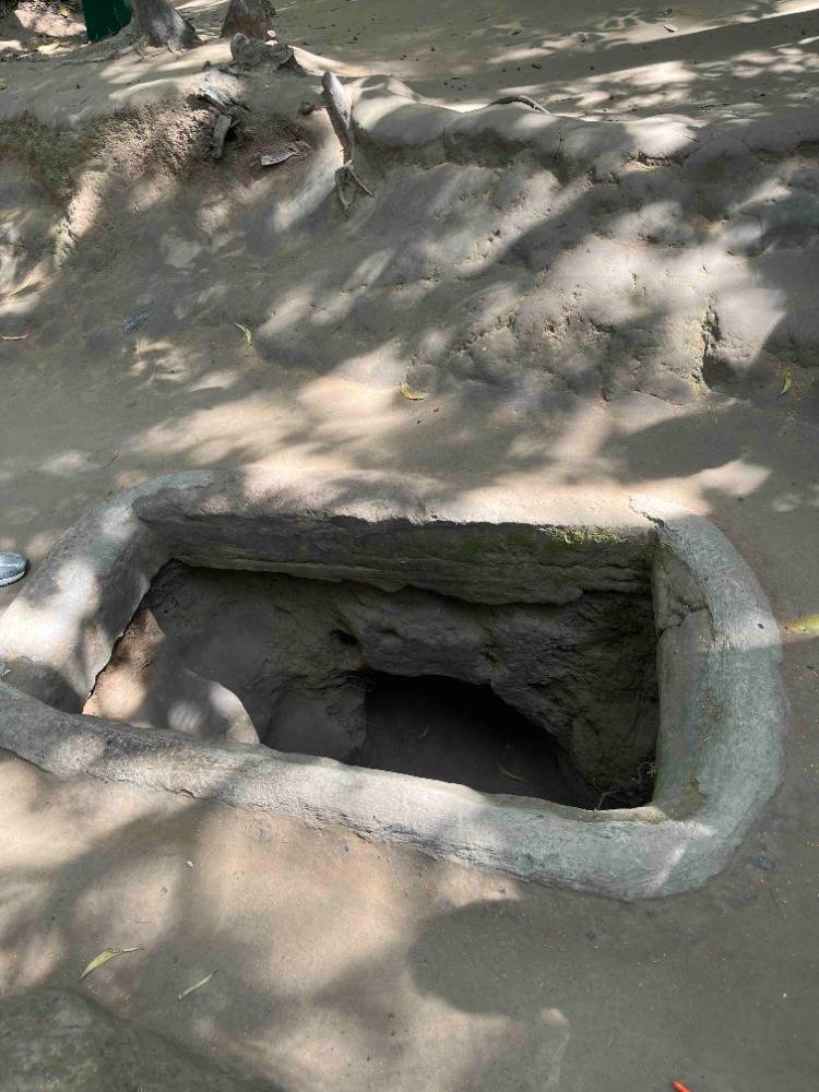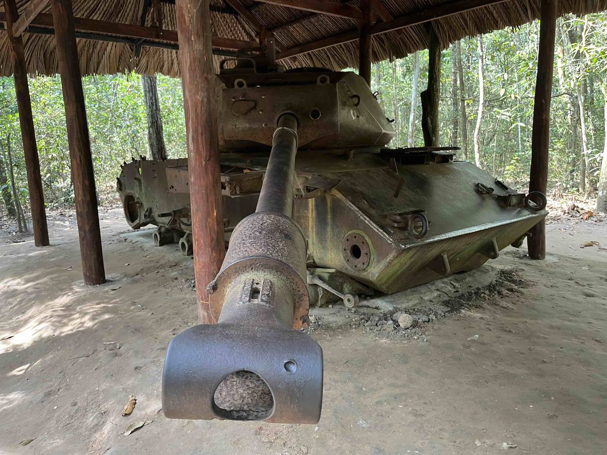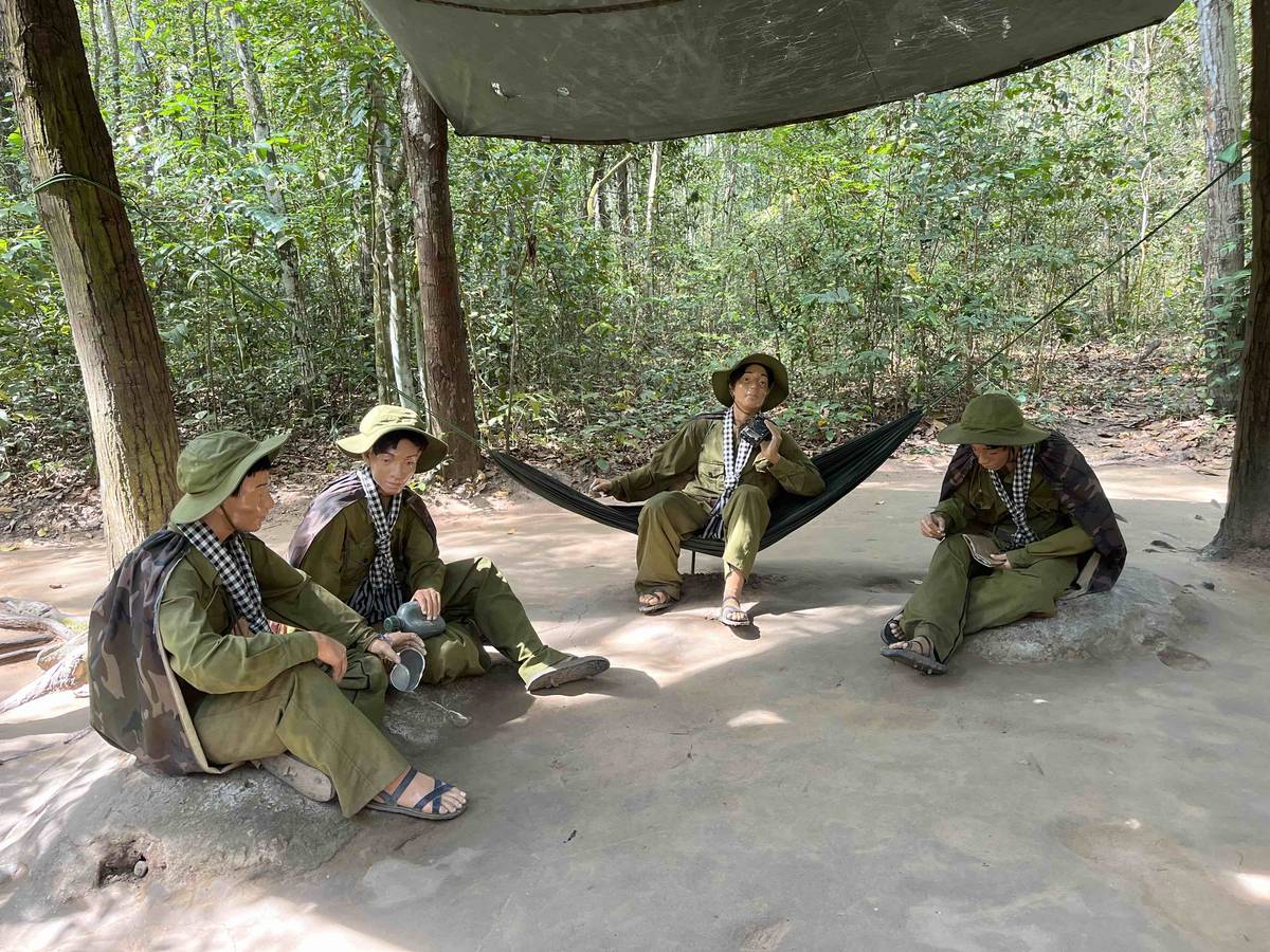 Jihozápadně od Saigonu jsou turistickou atrakcí tunely Cu Chi, které komunističtí partyzáni používali k úkrytu a přesunům. (Na snímku figuríny partyzánů.)