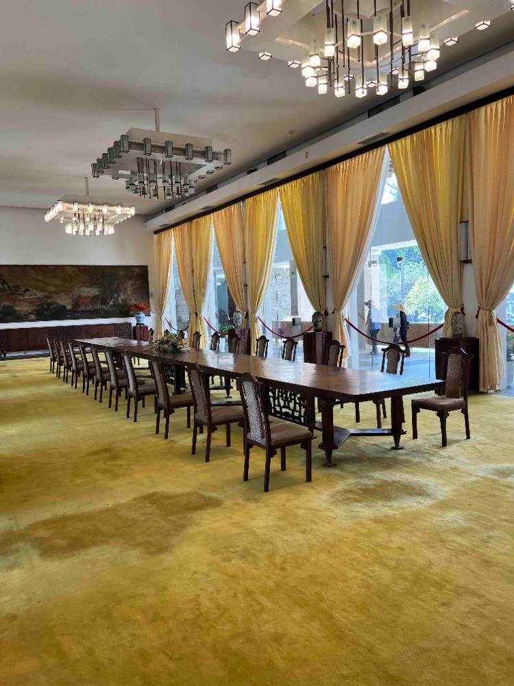 Místnost pro bankety a státní obědy či večeře. Ještě na začátku března 1975 - necelé dva měsíce před pádem Saigonu - zde večeřela delegace amerických kongresmanů.