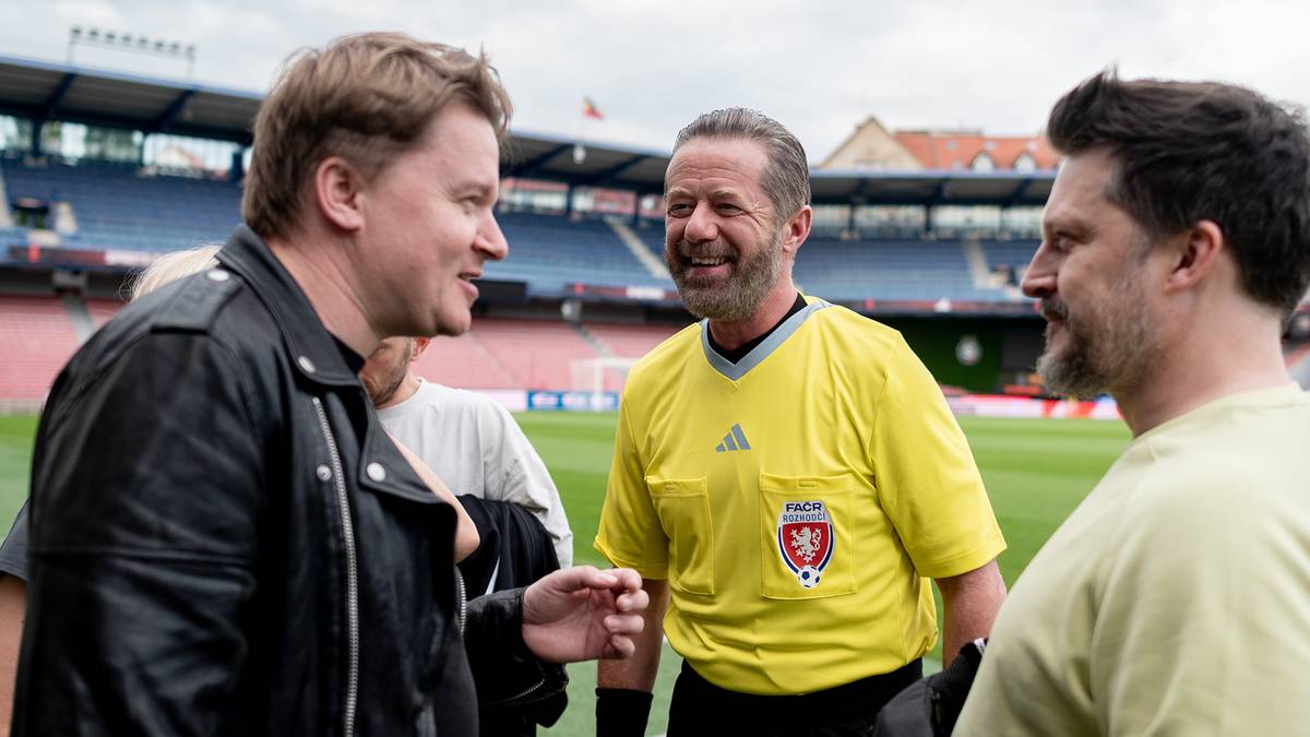 Na natáčení fotbalové komedie Kouzlo derby, která vstoupila do kin letos v létě. Jiřího Langmajera (uprostřed na snímku) prý ani nemusí příliš režírovat.