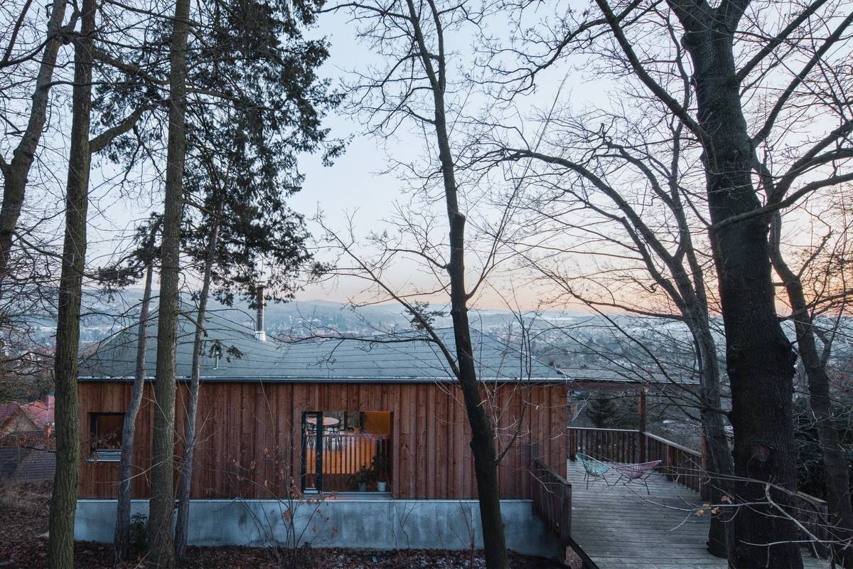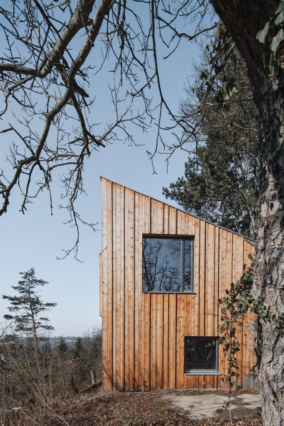 Stavba při pohledu od sousedů působí celkem majestátním dojmem.