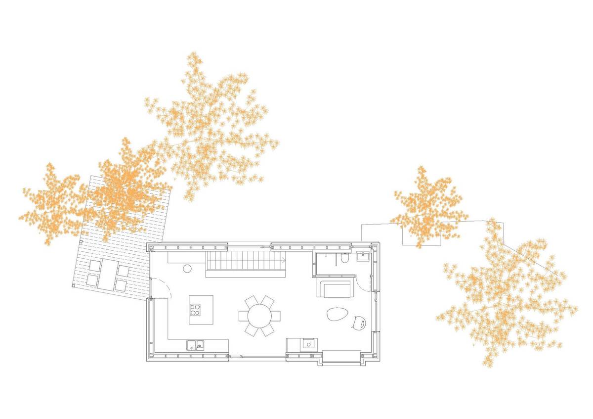 Nákres druhého patra prozrazuje uspořádání v interiéru.