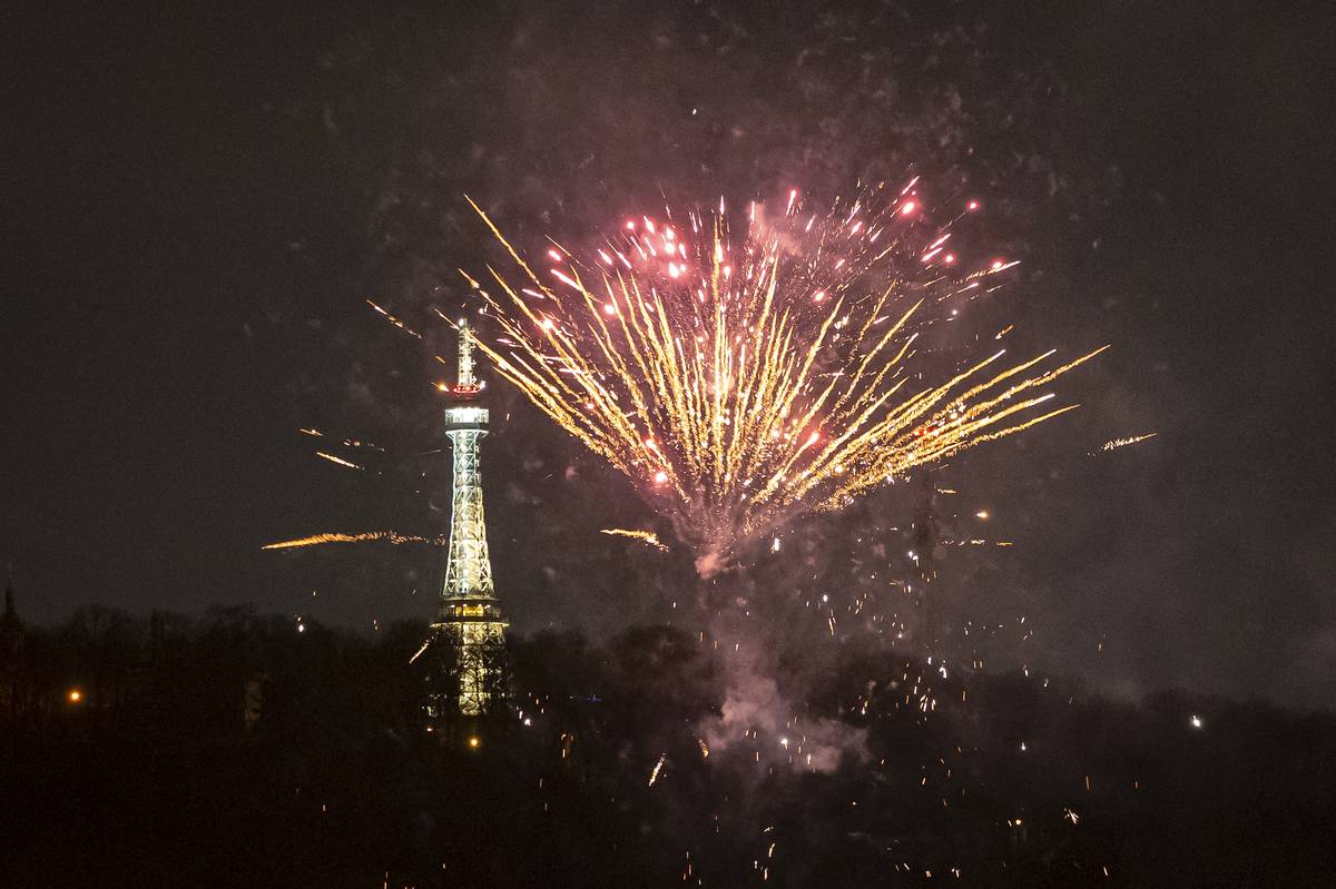Novoroční obloha nad Prahou plná světel i přes nové restrikce.