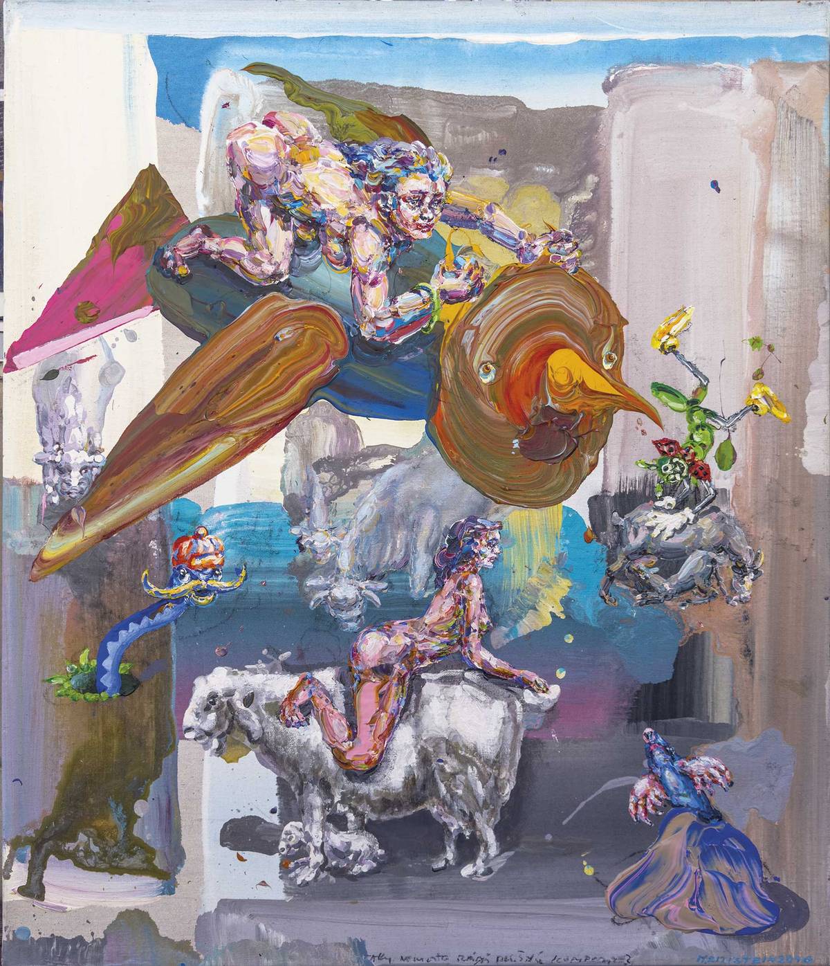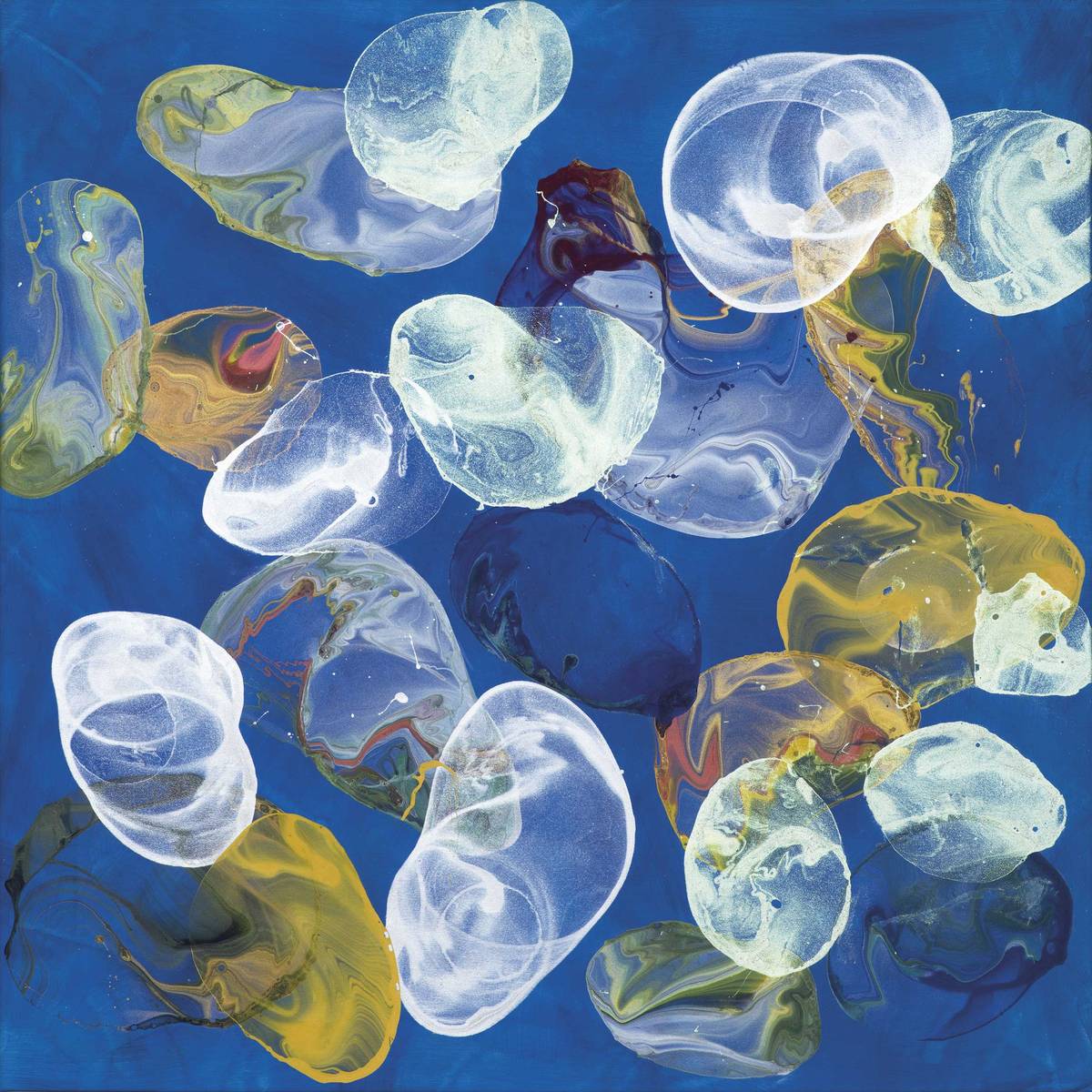 Bez názvu (Jiří George Dokoupil; akryl, pigment, mýdlové bubliny na plátně, 2023)