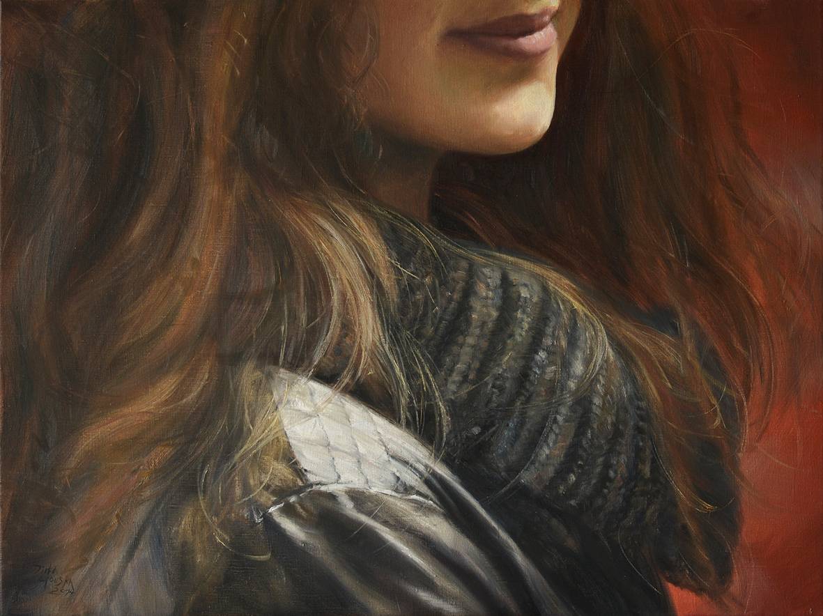 Poloportrét s červeným pozadím (Jiří Houska; olej na plátně, 2014)