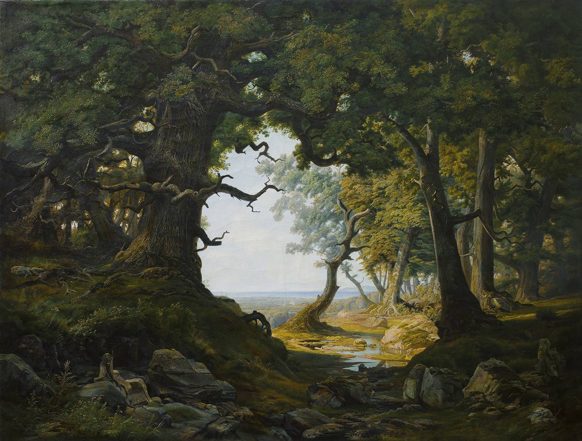 Choltický les u Pardubic / Na kraji dubového lesa (Bedřich Havránek; olej na plátně, kolem 1855)