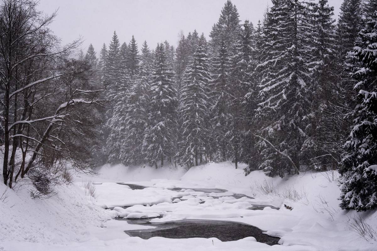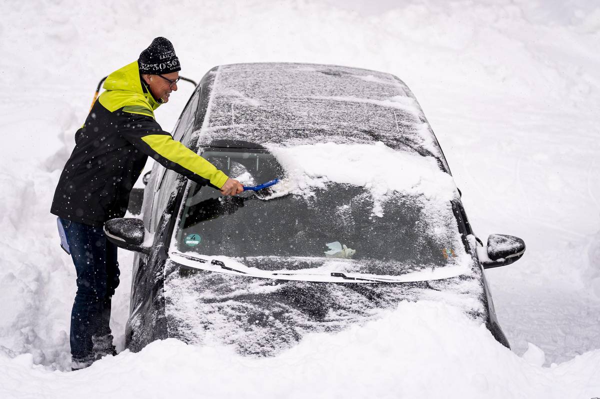Sněžení a mrazivé počasí na horách neustalo, takže na cestu od sjezdovky bylo potřeba škrábat a hrabat.