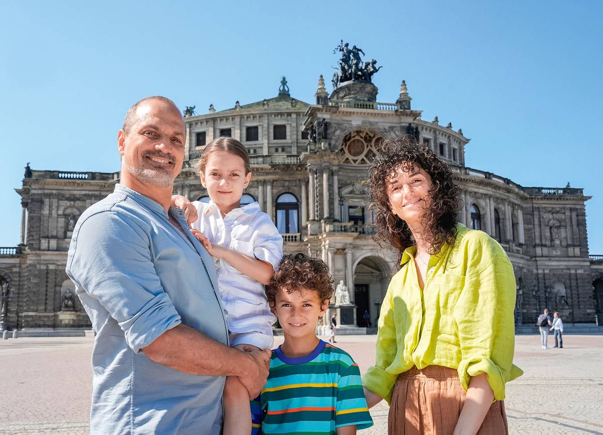 Jiří Bubeníček získal, mimo jiná ocenění, i baletního Oscara – cenu Benois de la Danse. S rodinou před budovou slavného divadla, kde působil řadu let.